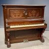 The casework of this instrument is a masterpiece in itself, showcasing beautifully carved panels, ornate moldings, and graceful legs, all crafted from the finest book-matched burl walnut. The artistry and craftsmanship evident here are seldom encountered in modern instruments, making this piano a striking example of 19th-century design at its best.