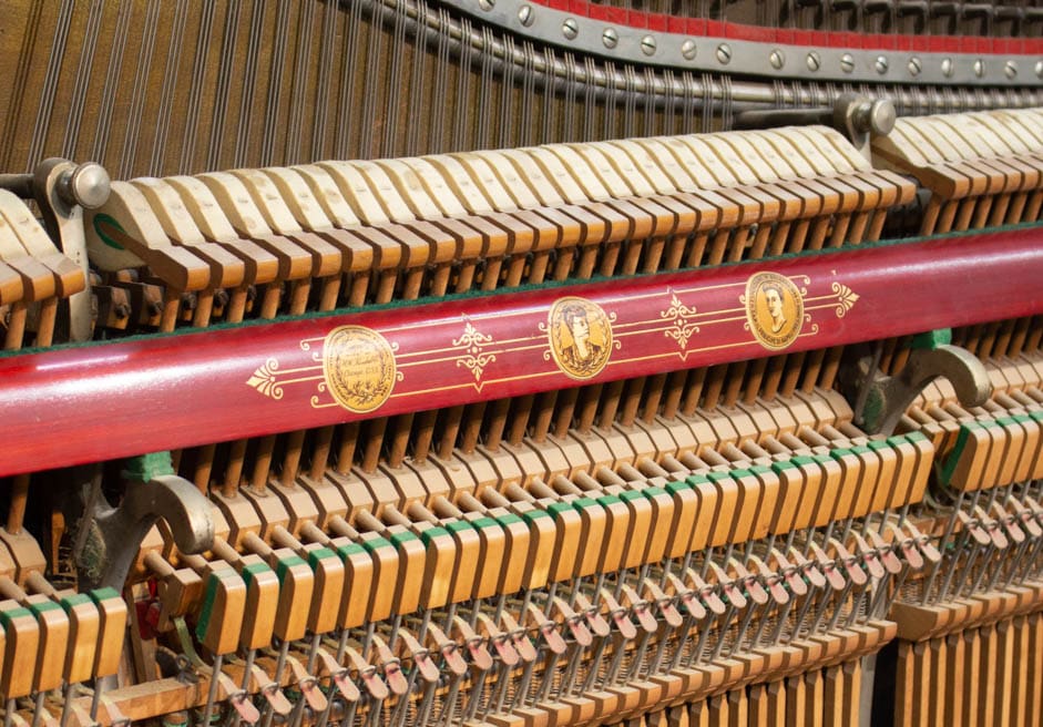DEPOSITS: The restoration of this instrument has not been completed. A 30% deposit is required on instruments pending restoration. This deposit holds the instrument and keeps it from being offered to other clients, and it also makes that piano’s restoration a priority. Once we complete the restoration, we invite the client to visit our shop to see and hear the piano. If the client is unable to visit our shop, we will send professional photos and videos of the piano for review. The client then has the option of paying the balance and purchasing the piano, transferring their balance to another piano in our shop, or getting a full refund for their deposit. The client is never at risk.