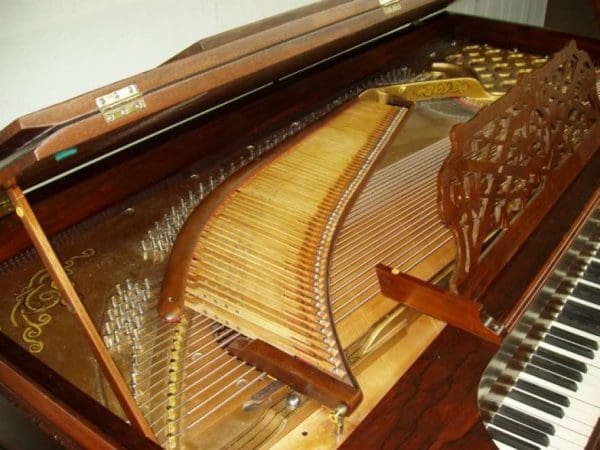 DEPOSITS: The restoration of this instrument has not been completed. A 30% deposit is required on instruments pending restoration. This deposit holds the instrument and keeps it from being offered to other clients, and it also makes that piano’s restoration a priority. Once we complete the restoration, we invite the client to visit our shop to see and hear the piano. If the client is unable to visit our shop, we will send professional photos and videos of the piano for review. The client then has the option of paying the balance and purchasing the piano, transferring their balance to another piano in our shop, or getting a full refund for their deposit. The client is never at risk.