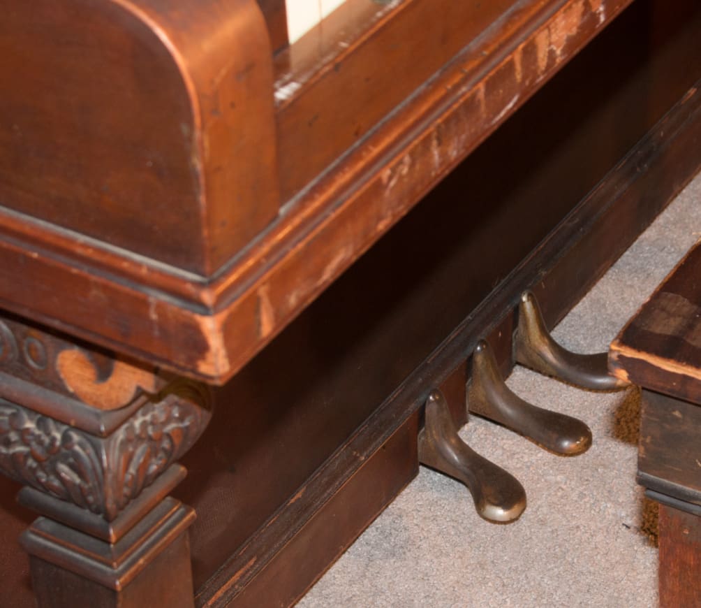 DEPOSITS: The restoration of this instrument has not been completed. A 30% deposit is required on instruments pending restoration. This deposit holds the instrument and keeps it from being offered to other clients, and it also makes that piano’s restoration a priority. Once we complete the restoration, we invite the client to visit our shop to see and hear the piano. If the client is unable to visit our shop, we will send professional photos and videos of the piano for review. The client then has the option of paying the balance and purchasing the piano, transferring their balance to another piano in our shop, or getting a full refund for their deposit. The client is never at risk.