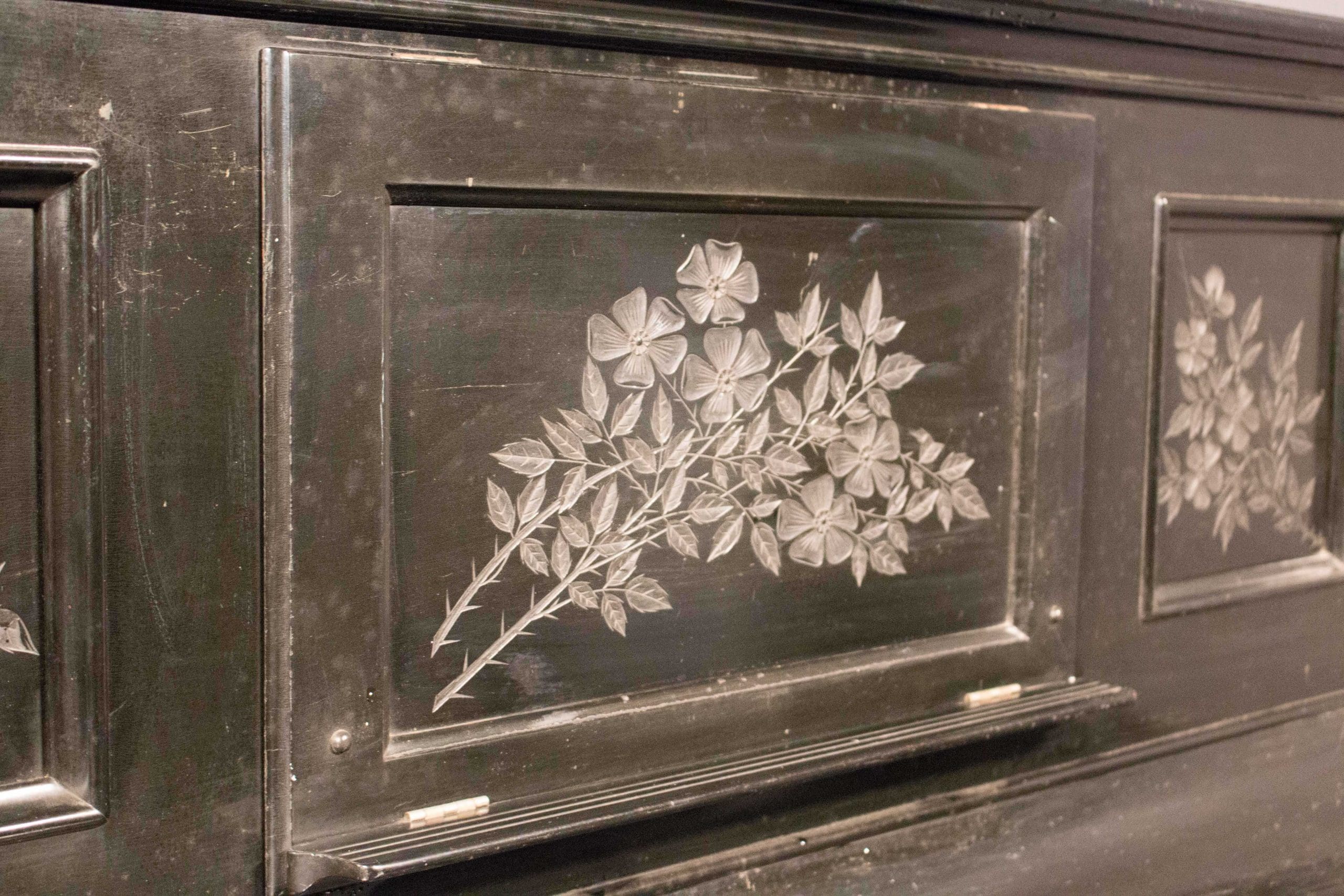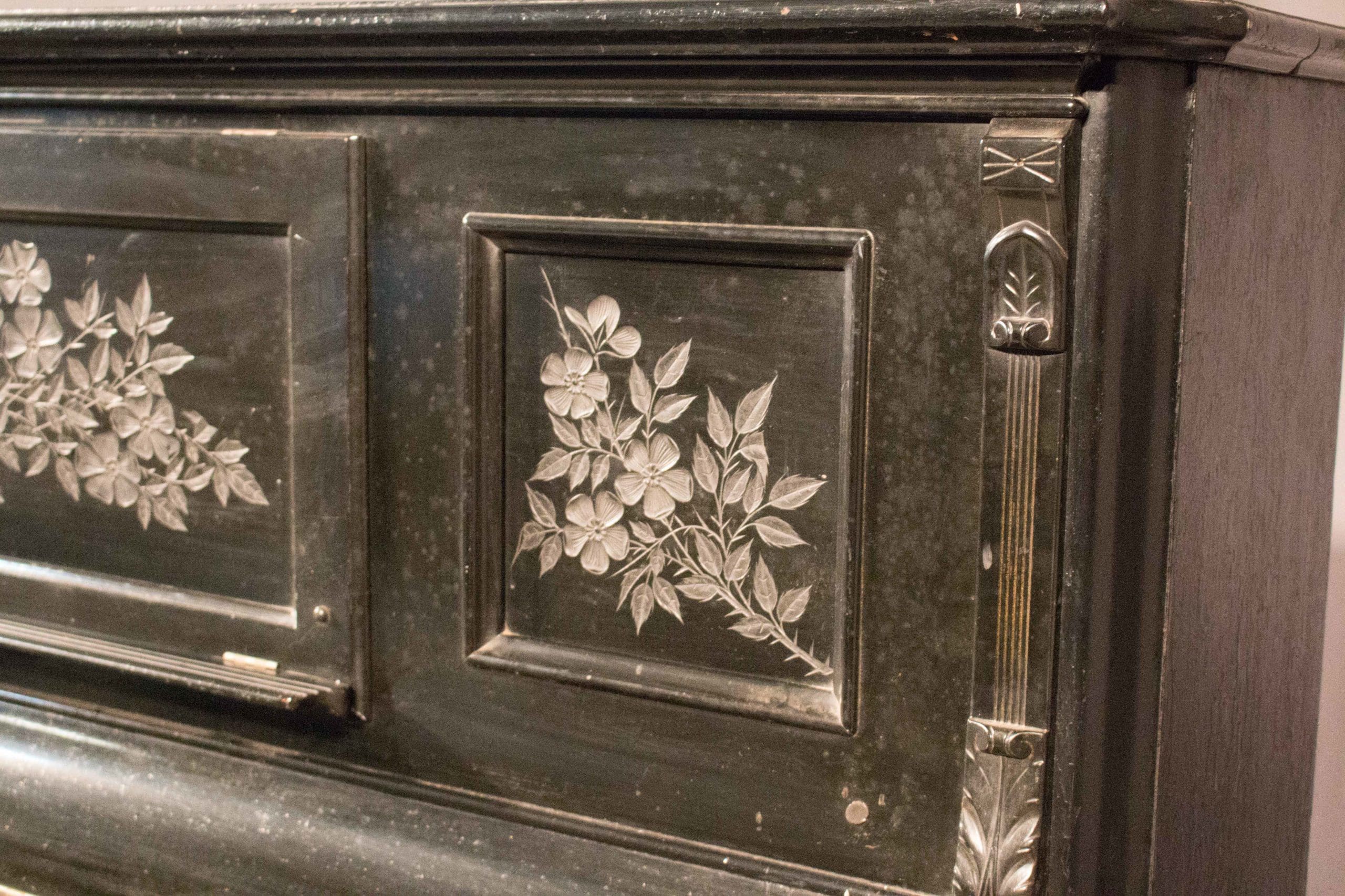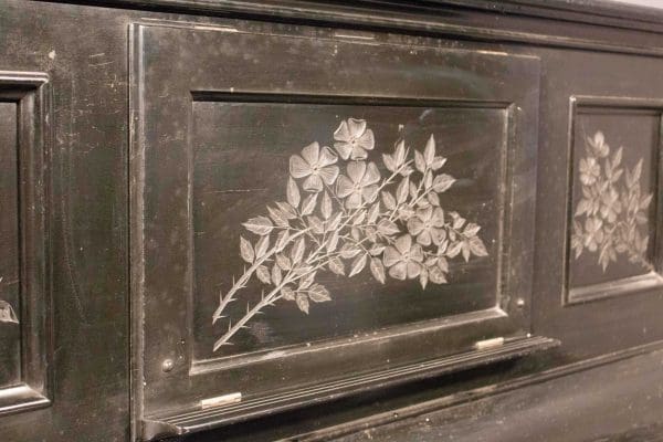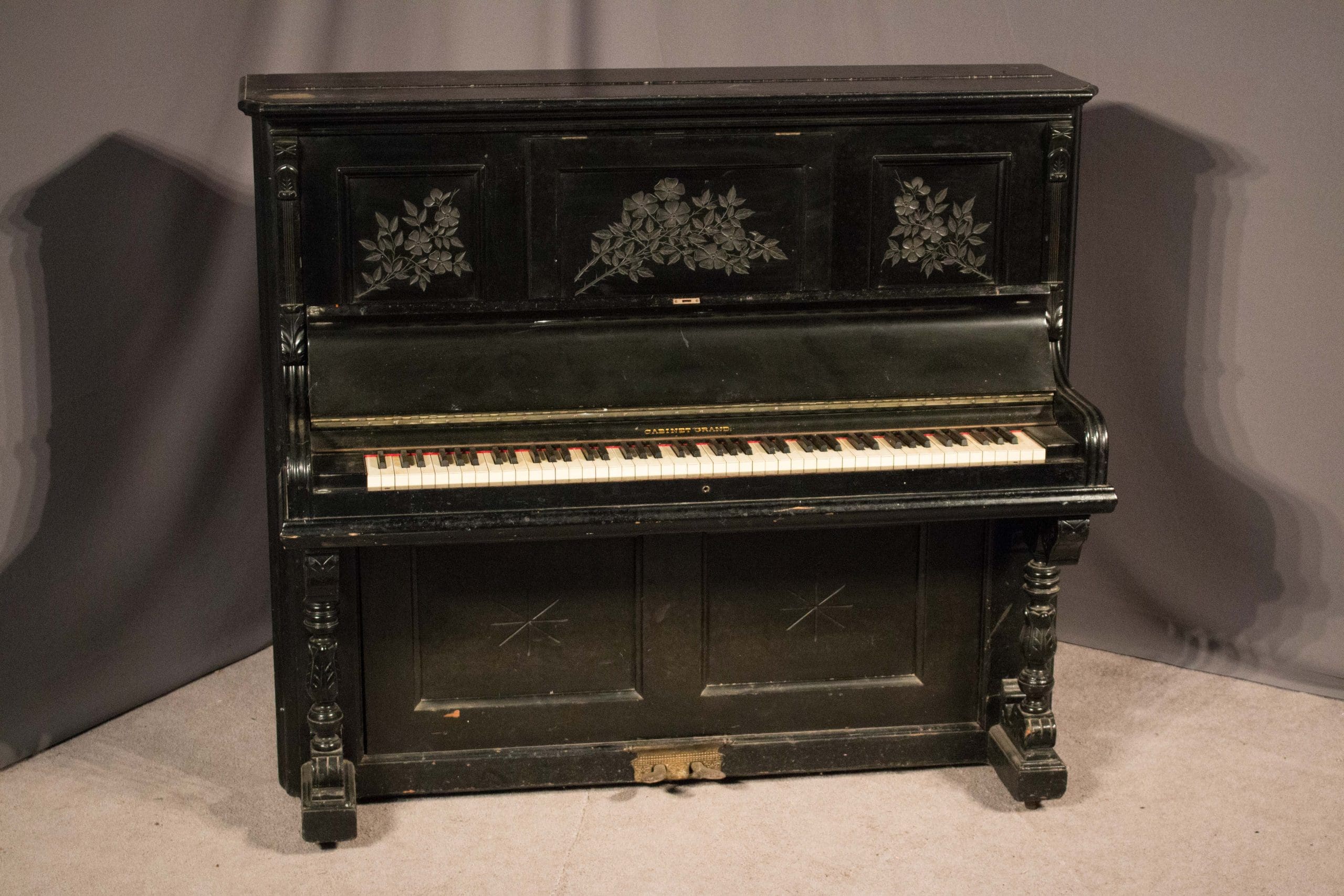 This piano is done in an original black lacquer finish and is of the elegant Eastlake Victorian style. Note the delicately embossed etchings and carved moldings which come together in simple elegance. Even now prior to restoration, the piano has a large, full sound one would expect from a well-made Krakauer piano. You simply can’t get craftsmanship like this in pianos built today!