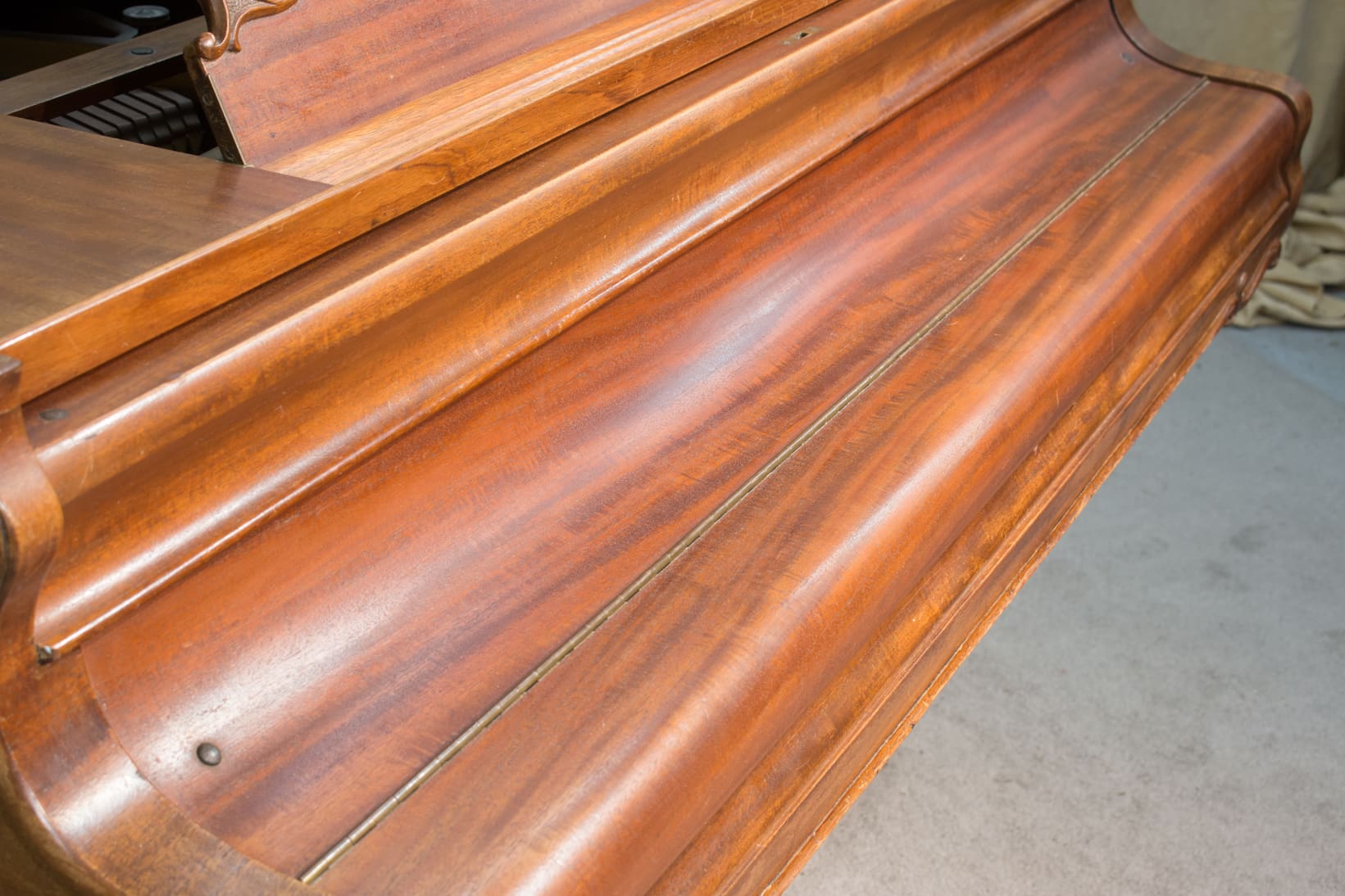 DEPOSITS: The restoration of this instrument has not been completed. A 30% deposit is required on instruments pending restoration. This deposit holds the instrument and keeps it from being offered to other clients, and it also makes that piano’s restoration a priority. Once we complete the restoration, we invite the client to visit our shop to see and hear the piano. If the client is unable to visit our shop, we will send professional photos and videos of the piano for review. The client then has the option of paying the balance and purchasing the piano, transferring their balance to another piano in our shop, or getting a full refund for their deposit. The client is never at risk.