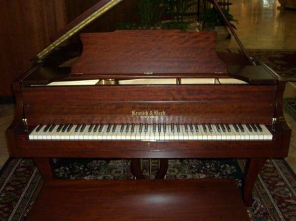 Elegant Queen Anne Style Kranich & Bach Baby Grand Piano In Stunning Red Mahogany Wood