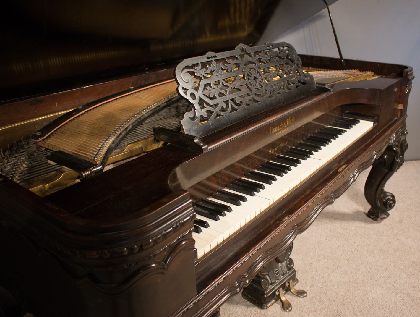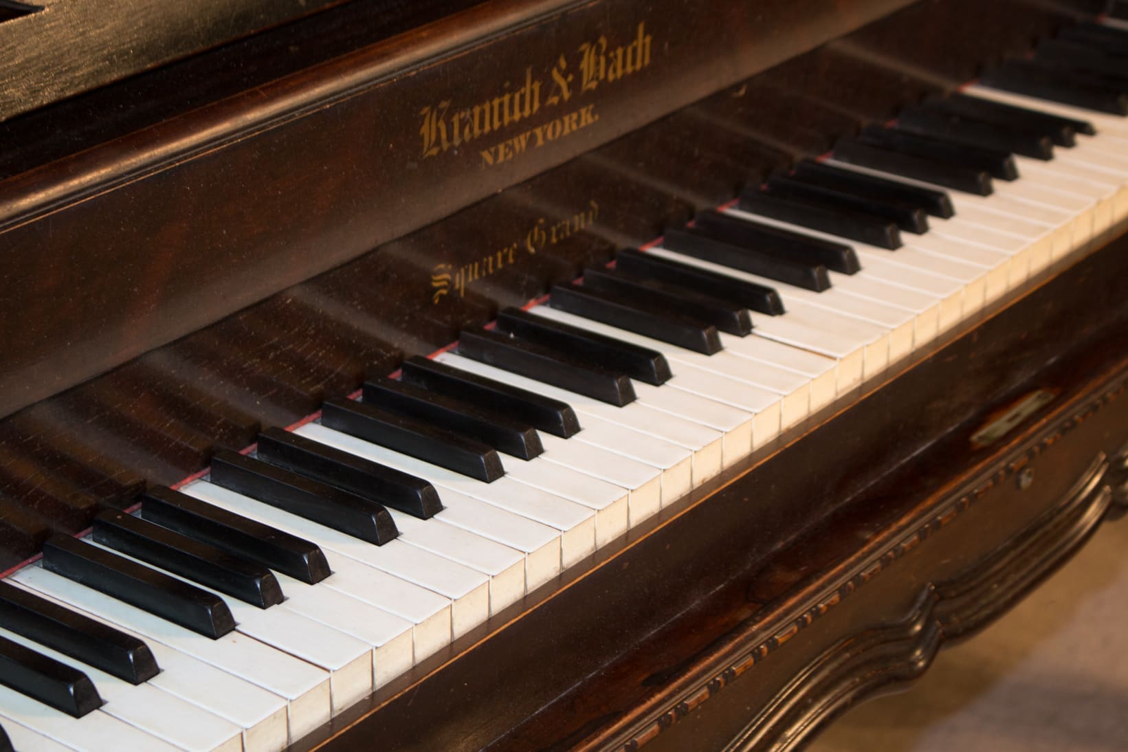 This is a lovely Kranich & Bach square grand piano from the 1870s, a time when more square pianos were being built in America than both upright and grand pianos combined! Many of Kranich & Bach’s innovations and improvements are present in this instrument, giving a full, rich sound quality.