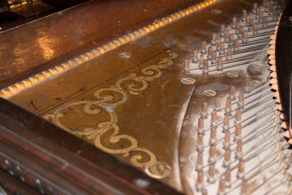 DEPOSITS: The restoration of this instrument has not been completed. A 30% deposit is required on instruments pending restoration. This deposit holds the instrument and keeps it from being offered to other clients, and it also makes that piano’s restoration a priority. Once we complete the restoration, we invite the client to visit our shop to see and hear the piano. If the client is unable to visit our shop, we will send professional photos and videos of the piano for review. The client then has the option of paying the balance and purchasing the piano, transferring their balance to another piano in our shop, or getting a full refund for their deposit. The client is never at risk.