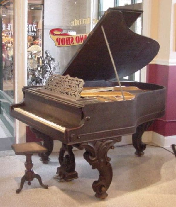 DEPOSITS: The restoration of this instrument has not been completed. A 30% deposit is required on instruments pending restoration. This deposit holds the instrument and keeps it from being offered to other clients, and it also makes that piano’s restoration a priority. Once we complete the restoration, we invite the client to visit our shop to see and hear the piano. If the client is unable to visit our shop, we will send professional photos and videos of the piano for review. The client then has the option of paying the balance and purchasing the piano, transferring their balance to another piano in our shop, or getting a full refund for their deposit. The client is never at risk.
