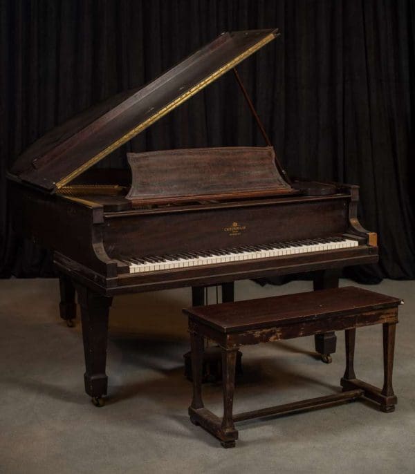 DEPOSITS: The restoration of this instrument has not been completed. A 30% deposit is required on instruments pending restoration. This deposit holds the instrument and keeps it from being offered to other clients, and it also makes that piano’s restoration a priority. Once we complete the restoration, we invite the client to visit our shop to see and hear the piano. If the client is unable to visit our shop, we will send professional photos and videos of the piano for review. The client then has the option of paying the balance and purchasing the piano, transferring their balance to another piano in our shop, or getting a full refund for their deposit. The client is never at risk.