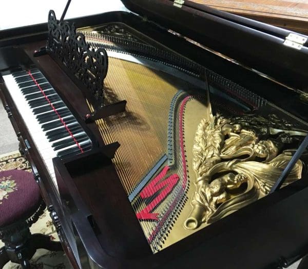 DEPOSITS: The restoration of this instrument has not been completed. A 30% deposit is required on instruments pending restoration. This deposit holds the instrument and keeps it from being offered to other clients, and it also makes that piano’s restoration a priority. Once we complete the restoration, we invite the client to visit our shop to see and hear the piano. If the client is unable to visit our shop, we will send professional photos and videos of the piano for review. The client then has the option of paying the balance and purchasing the piano, transferring their balance to another piano in our shop, or getting a full refund for their deposit. The client is never at risk.