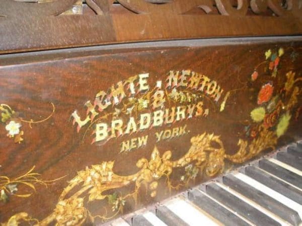 This is a beautiful pre-civil war square grand piano built by Lighte, Newton & Bradbury. Lighte, Newton & Bradbury was established in about 1848, and they built extremely high quality, expensive pianos until 1861 under that name as well as Lighte & Newton and F.C. Lighte. After this, the name was changed to the Bradbury Piano Company. Bradbury built pianos until 1949.