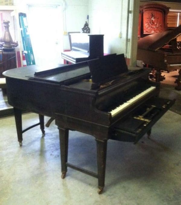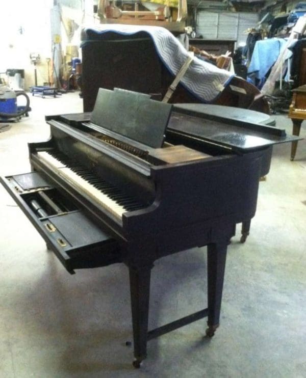 DEPOSITS: The restoration of this instrument has not been completed. A 30% deposit is required on instruments pending restoration. This deposit holds the instrument and keeps it from being offered to other clients, and it also makes that piano’s restoration a priority. Once we complete the restoration, we invite the client to visit our shop to see and hear the piano. If the client is unable to visit our shop, we will send professional photos and videos of the piano for review. The client then has the option of paying the balance and purchasing the piano, transferring their balance to another piano in our shop, or getting a full refund for their deposit. The client is never at risk.