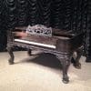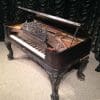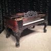 Built by the Mathushek Piano Company of New Haven, CT, this model is known as the “Medium” Square Grand Piano. Mathushek produced three sizes of square pianos. The “Colibri” was the smallest, followed by the “Medium”, and the largest size was the “Orchestral”. Surviving instruments seem to indicate that the “Medium” model was built in far fewer numbers than the “Colibri” and the “Orchestral”, making the “Medium” model quite rare today.Mathushek was known for getting the largest tone out of the smallest space, and the tone quality of their square pianos is very impressive. This lovely instrument is made of Brazilian Rosewood and is of the Rococo Victorian style. Note the heavily carved scalloping around the edges of the case, as well as an ornate grilled music rack. This piano is being restored to like new condition, inside and out. Computerized player mechainsms can be installed if desired.
