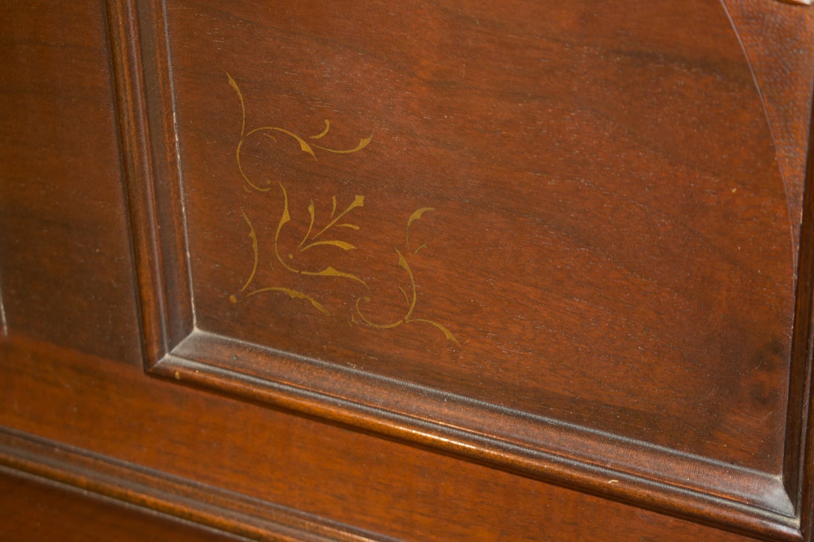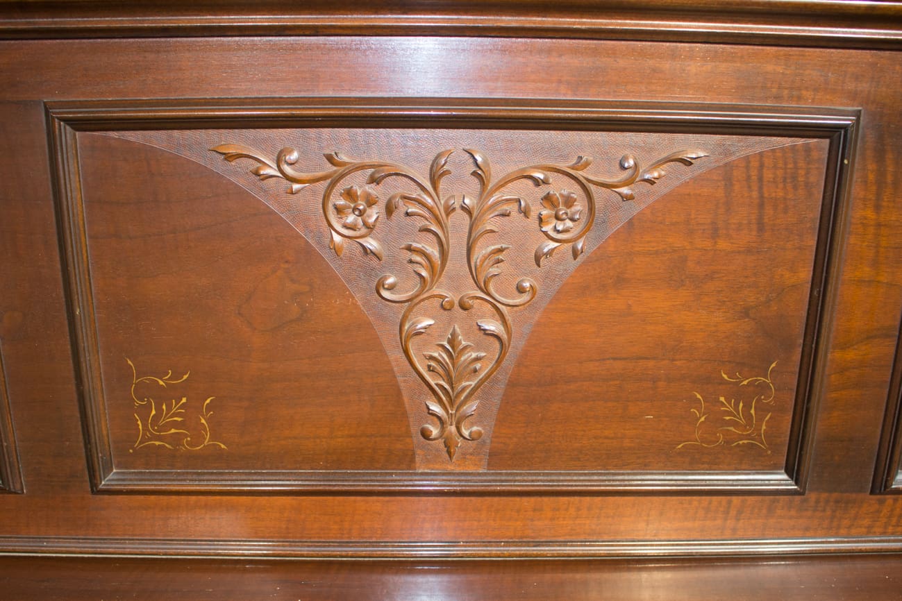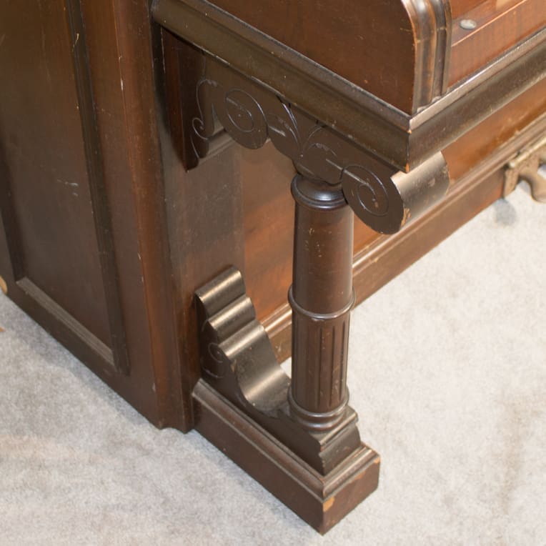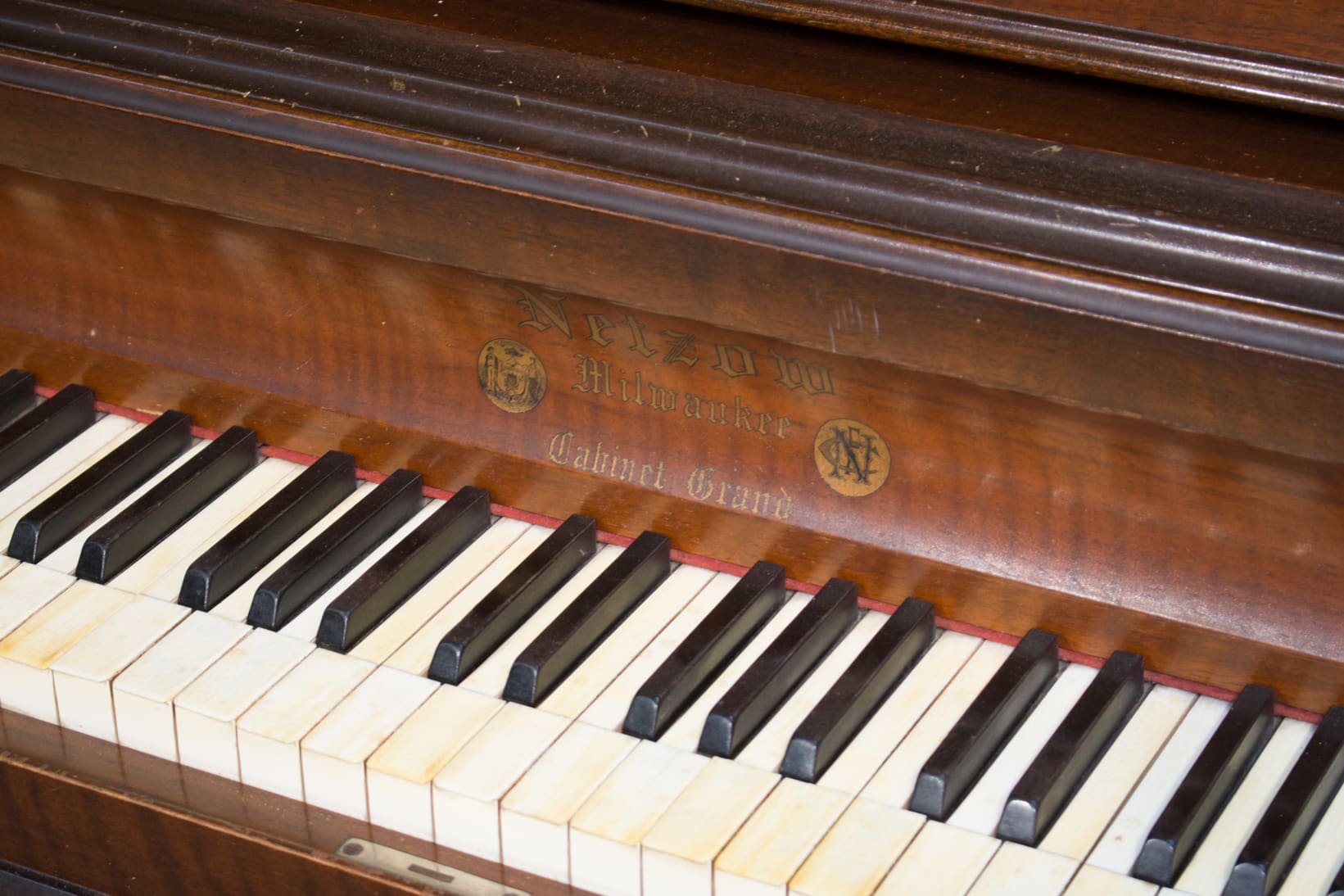 The Netzow Manufacturing Company was one of Milwaukee’s most successful piano manufacturers. This instrument is a beautiful example of Netzow’s extraordinary craftsmanship from the early 20thCentury. The piano is made of richly figured walnut wood and is of the Edwardian style. The Edwardian period (named for the reign of King Edward VII from about 1900 – 1910) was a transitional period that went from the elaborately carved Victorian style to the more stream-lined “modern” styles of the 20thCentury. This piano has a simple, elegant look with subtle carved details without being “too much”.