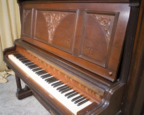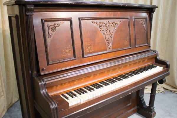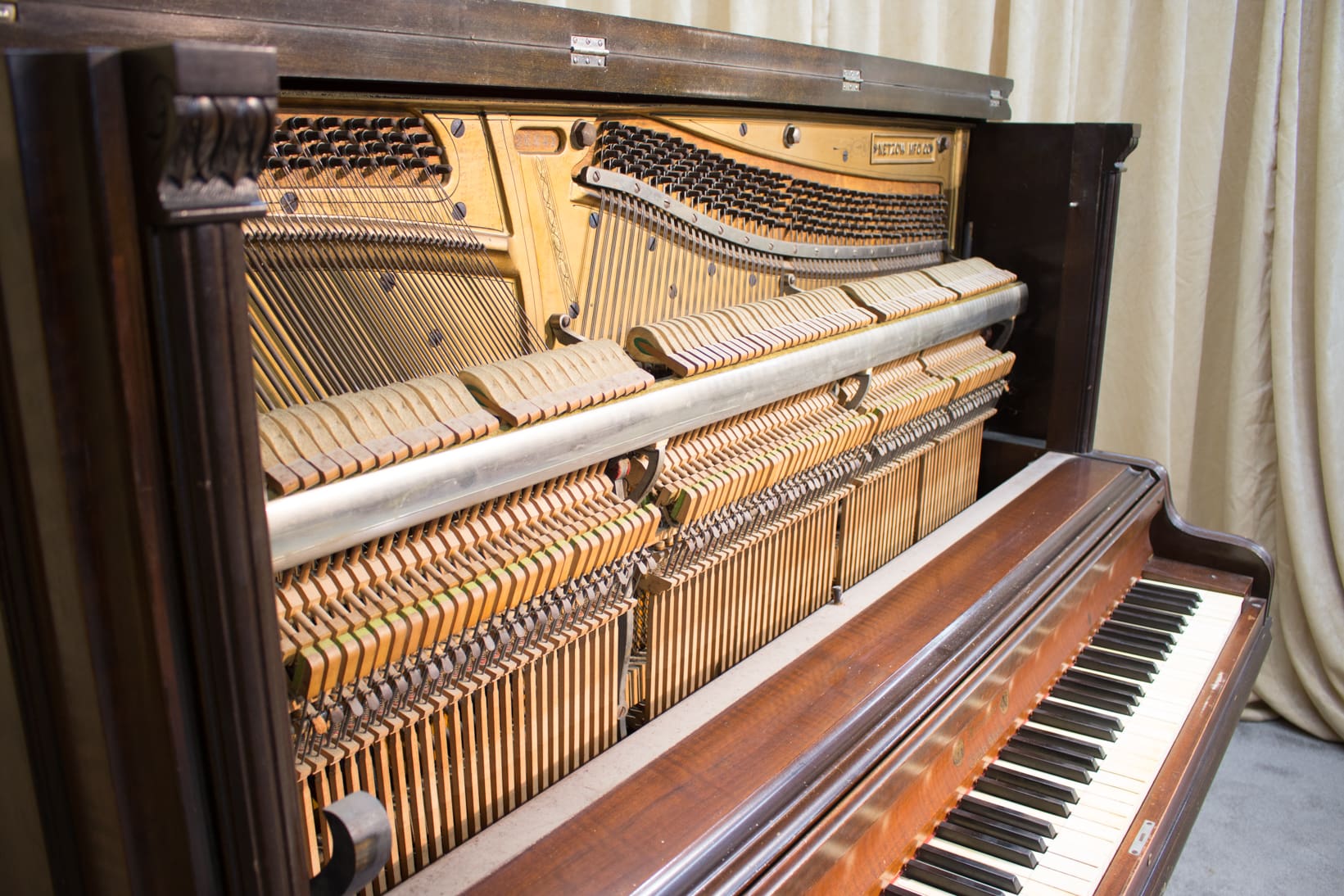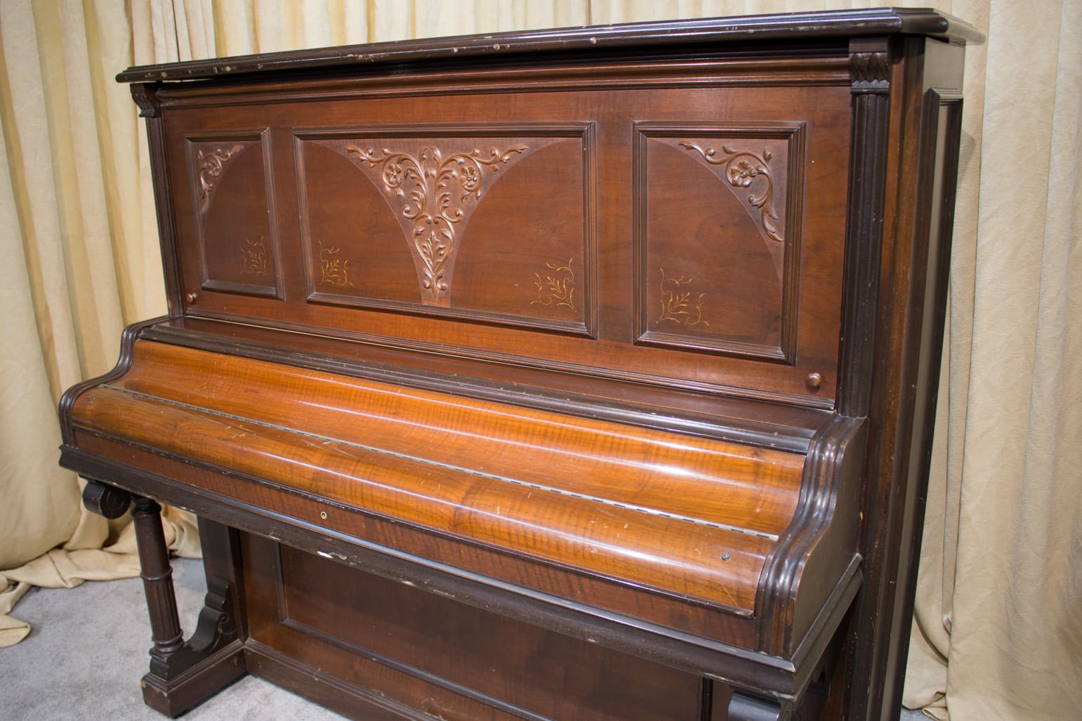 DEPOSITS: The restoration of this instrument has not been completed. A 30% deposit is required on instruments pending restoration. This deposit holds the instrument and keeps it from being offered to other clients, and it also makes that piano’s restoration a priority. Once we complete the restoration, we invite the client to visit our shop to see and hear the piano. If the client is unable to visit our shop, we will send professional photos and videos of the piano for review. The client then has the option of paying the balance and purchasing the piano, transferring their balance to another piano in our shop, or getting a full refund for their deposit. The client is never at risk.
