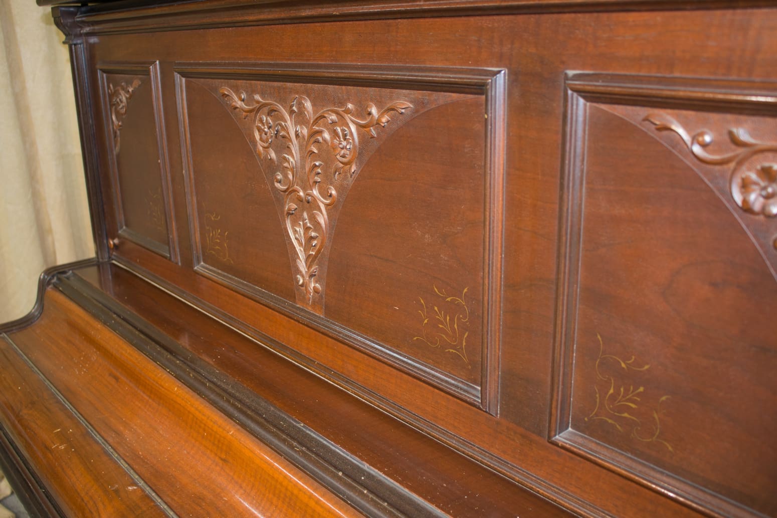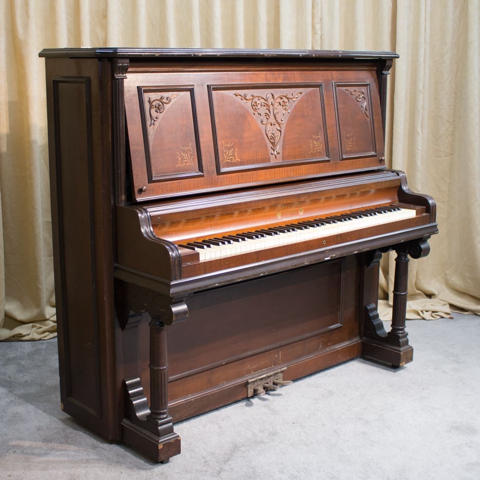 This piano is a large, full-size upright grand with the string length and soundboard area larger than a baby grand. The piano has the original ivory keys intact. The instrument will be restored to like-new condition, inside and out. If desired, this piano can be equipped with the Pianomation player system, and can play by itself by streaming through any smart device. Thousands of song titles are available.