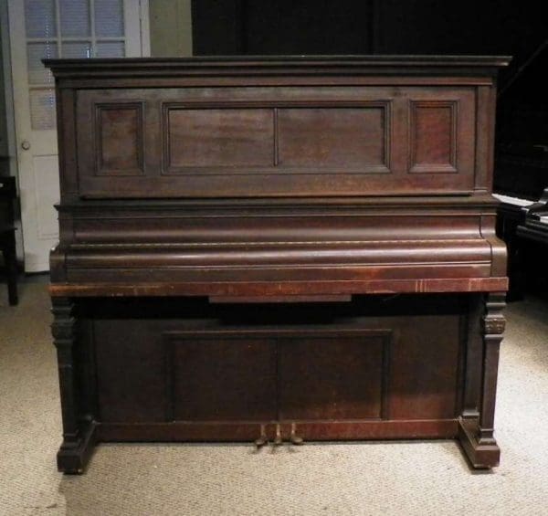 DEPOSITS: The restoration of this instrument has not been completed. A 30% deposit is required on instruments pending restoration. This deposit holds the instrument and keeps it from being offered to other clients, and it also makes that piano’s restoration a priority. Once we complete the restoration, we invite the client to visit our shop to see and hear the piano. If the client is unable to visit our shop, we will send professional photos and videos of the piano for review. The client then has the option of paying the balance and purchasing the piano, transferring their balance to another piano in our shop, or getting a full refund for their deposit. The client is never at risk.