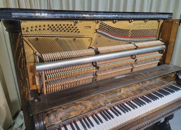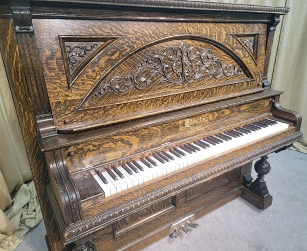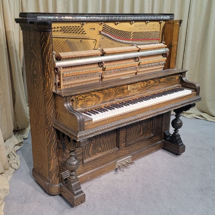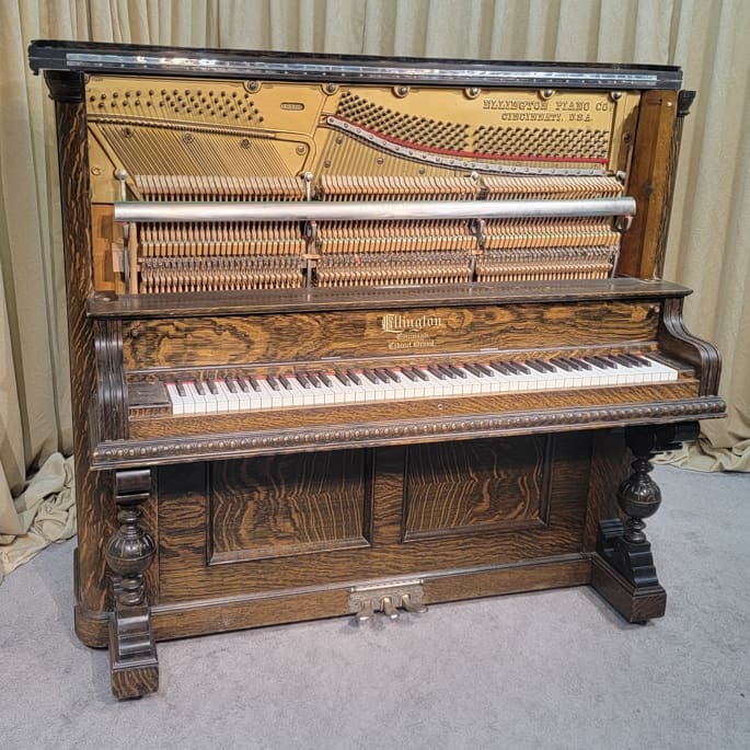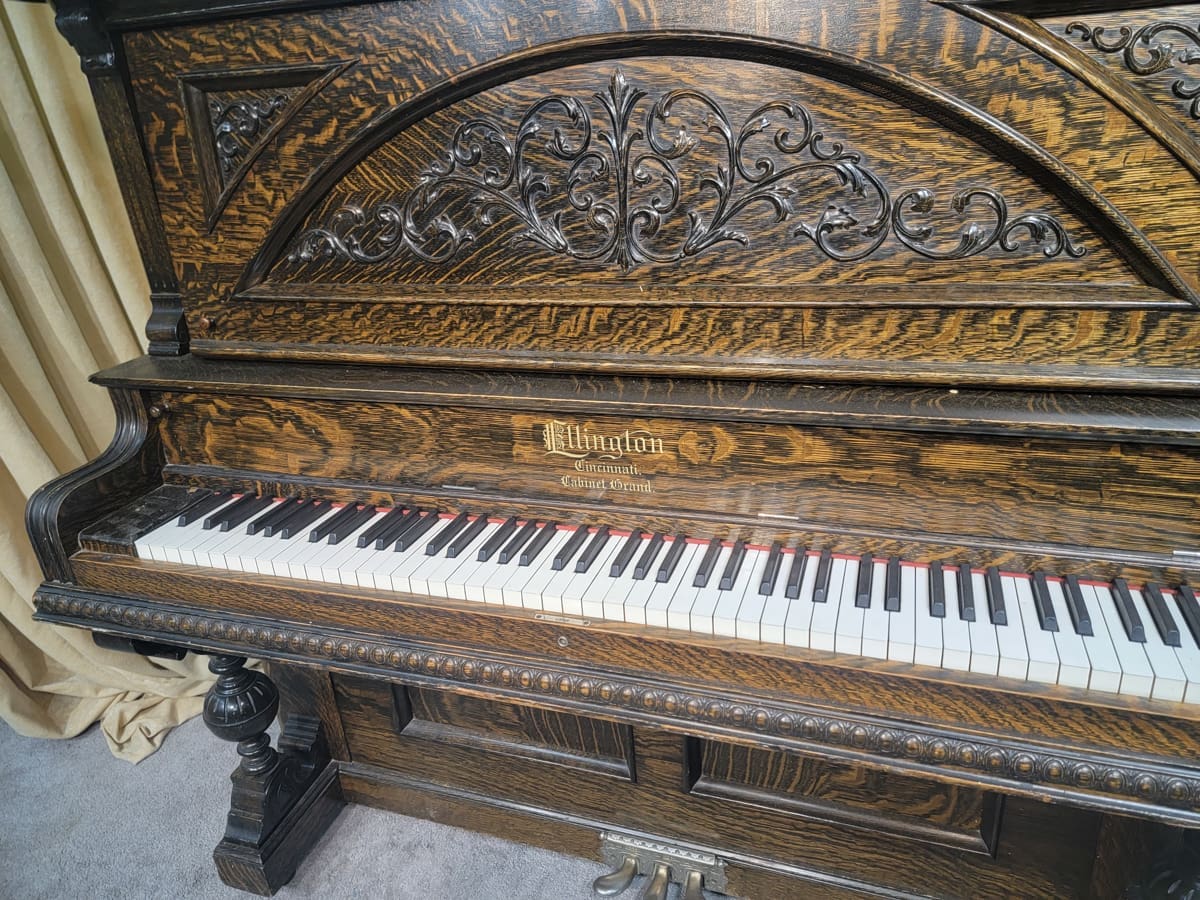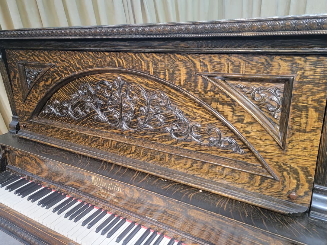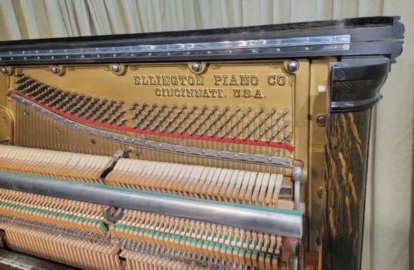 This beautiful piano was built by the Ellington Piano Company of Cincinnati in 1900. Ellington was one of the top brand names built by the famous Baldwin Piano Company, and they built high quality, expensive pianos from about 1893-1930.