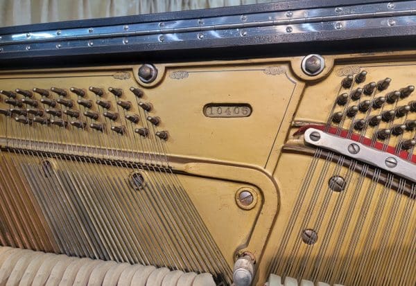 DEPOSITS: The restoration of this instrument has not been completed. A 30% deposit is required on instruments pending restoration. This deposit holds the instrument and keeps it from being offered to other clients, and it also makes that piano’s restoration a priority. Once we complete the restoration, we invite the client to visit our shop to see and hear the piano. If the client is unable to visit our shop, we will send professional photos and videos of the piano for review. The client then has the option of paying the balance and purchasing the piano, transferring their balance to another piano in our shop, or getting a full refund for their deposit. The client is never at risk.