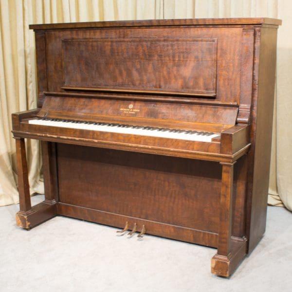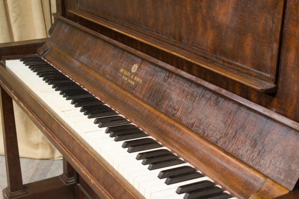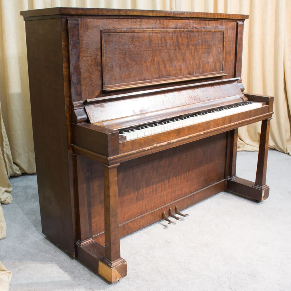 DEPOSITS: The restoration of this instrument has not been completed. A 30% deposit is required on instruments pending restoration. This deposit holds the instrument and keeps it from being offered to other clients, and it also makes that piano’s restoration a priority. Once we complete the restoration, we invite the client to visit our shop to see and hear the piano. If the client is unable to visit our shop, we will send professional photos and videos of the piano for review. The client then has the option of paying the balance and purchasing the piano, transferring their balance to another piano in our shop, or getting a full refund for their deposit. The client is never at risk.