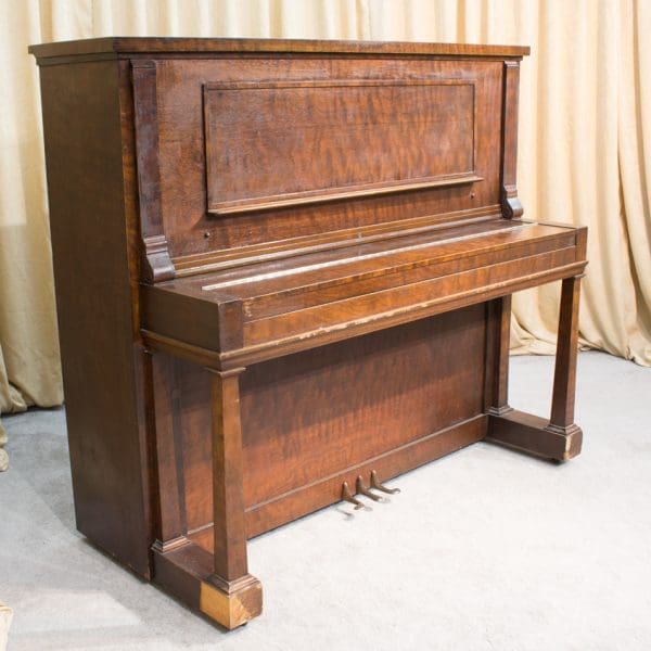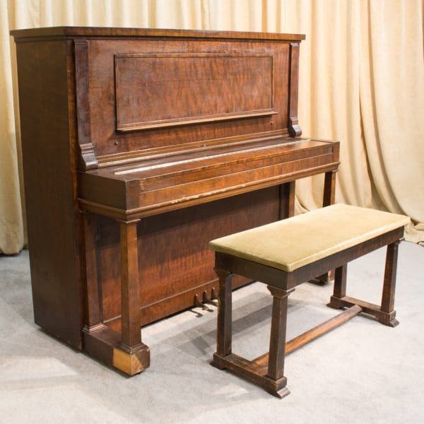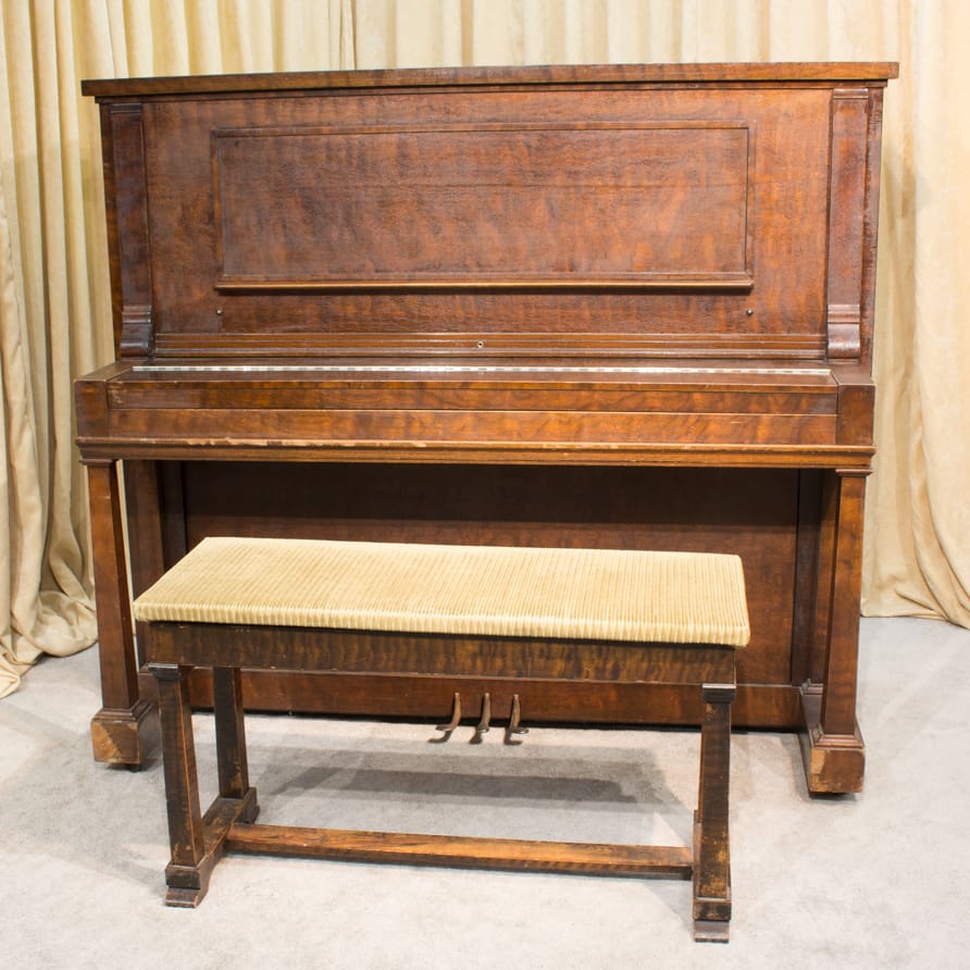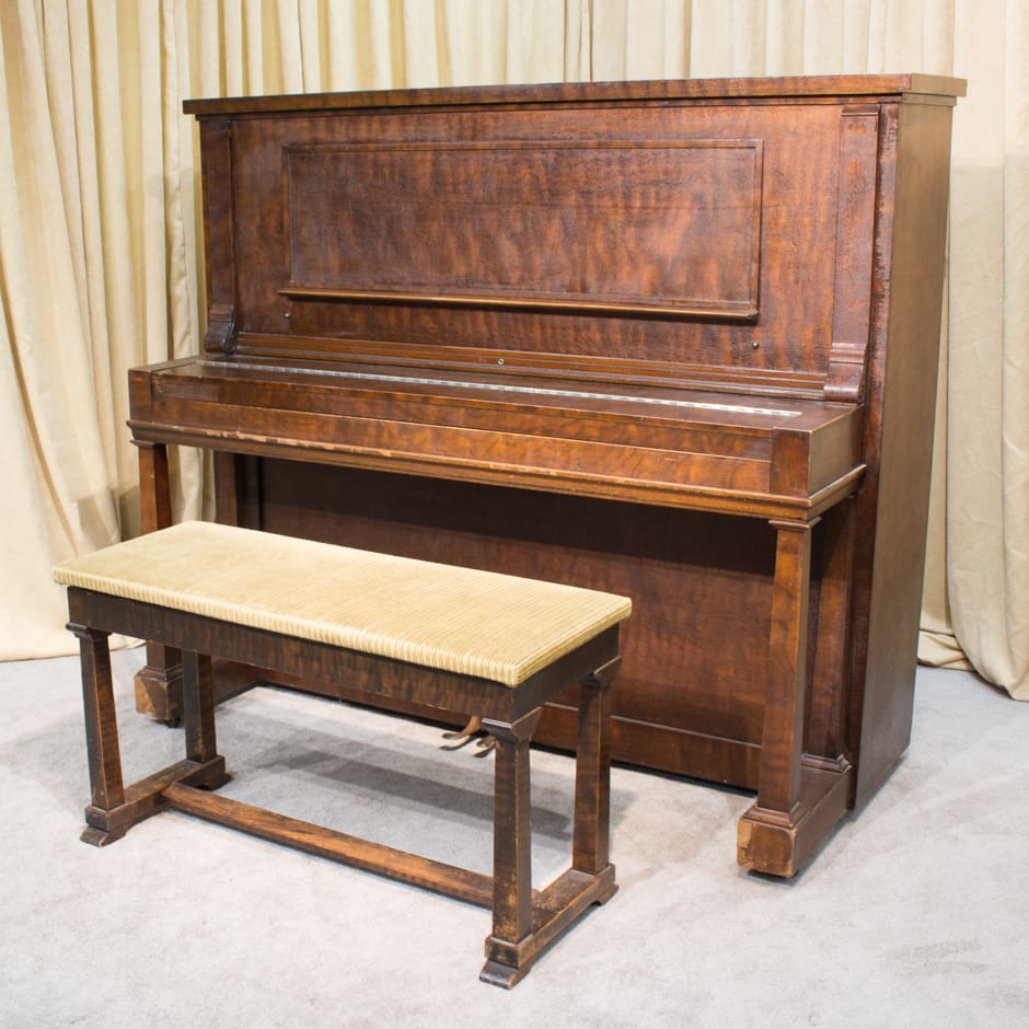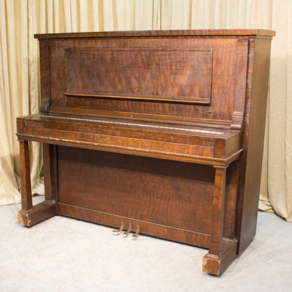 This piano was built by the renowned Paul G. Mehlin Piano Company of New York in 1913. This instrument is made of fancy grain book-matched French walnut wood and is of the classic Colonial style.