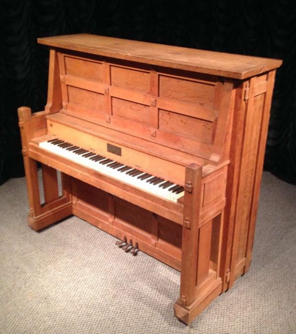 Note: As founder of The Antique Piano Shop, I have personally collected Mission / Arts & Crafts style pianos for over 25 years. I have a great passion for anything Mission / Arts & Crafts, including Craftsman homes, furniture, and accessories. If you are a true Arts & Crafts enthusiast, you will appreciate how impossible it is to find true Arts & Crafts / Mission style pianos in today’s market. Nearly three decades of collecting and preserving these “impossible to find” instruments has allowed me the opportunity to present the largest collection of true Mission / Arts & Crafts style instruments anywhere in the world.