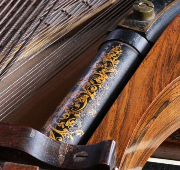Manufacturers had grandiose plans for these pianos with the Aeolian Attachment, convinced that the market would be all too eager to buy these instruments in order to economize on space in the parlor. The fatal mistake that these manufacturers did not take into consideration was that the presence of a piano and an organ in the parlor gave instant credibility of unmatched social status while the appearance of a piano in the room, even if combined with an organ inside it, was generally perceived as just a piano. Sadly, very few of these instruments were actually manufactured and very few survive today. This is a rare opportunity to own a fascinating and historically significant piece of America’s Victorian culture.