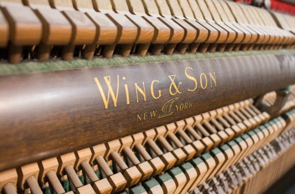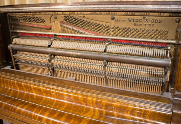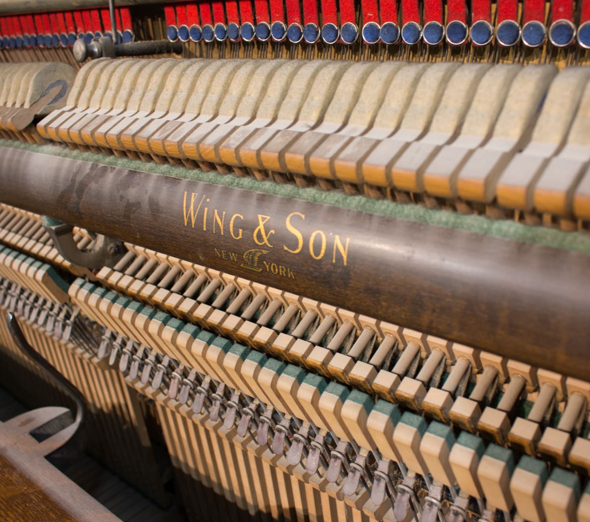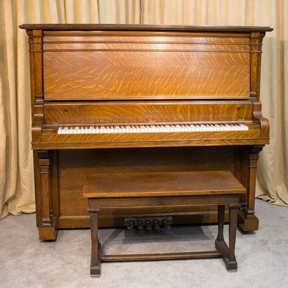 The Wing & Son Piano Company had a reputation for building only high quality pianos and sold them exclusively from lavish mail order catalogs. They were most popular for their 5-pedal “Orchestral Attachments” which mimicked harp, zither & mandolin