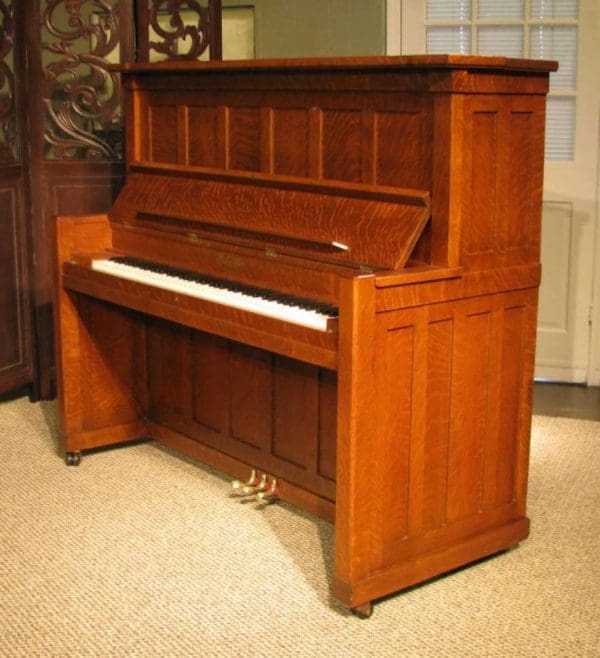 Note: As founder of The Antique Piano Shop, I have personally collected Mission / Arts & Crafts style pianos for over 25 years. I have a great passion for anything Mission / Arts & Crafts, including Craftsman homes, furniture, and accessories. If you are a true Arts & Crafts enthusiast, you will appreciate how impossible it is to find true Arts & Crafts / Mission style pianos in today’s market. Nearly three decades of collecting and preserving these “impossible to find” instruments has allowed me the opportunity to present the largest collection of true Mission / Arts & Crafts style instruments anywhere in the world.