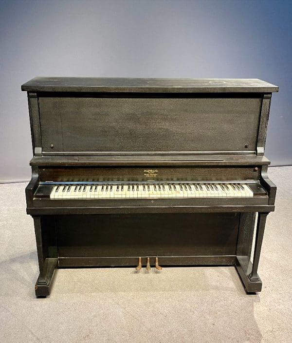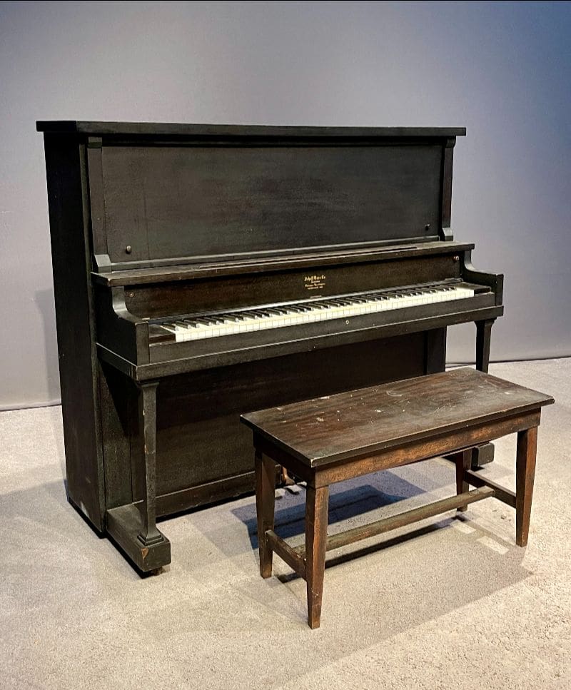 This impressive full-size “upright grand” will be meticulously restored with historical accuracy, returning both its majestic appearance and its commanding tone to the glory of its original era. Once complete, it will deliver a warm, resonant voice and a highly responsive touch—qualities that defined the finest instruments of its time.