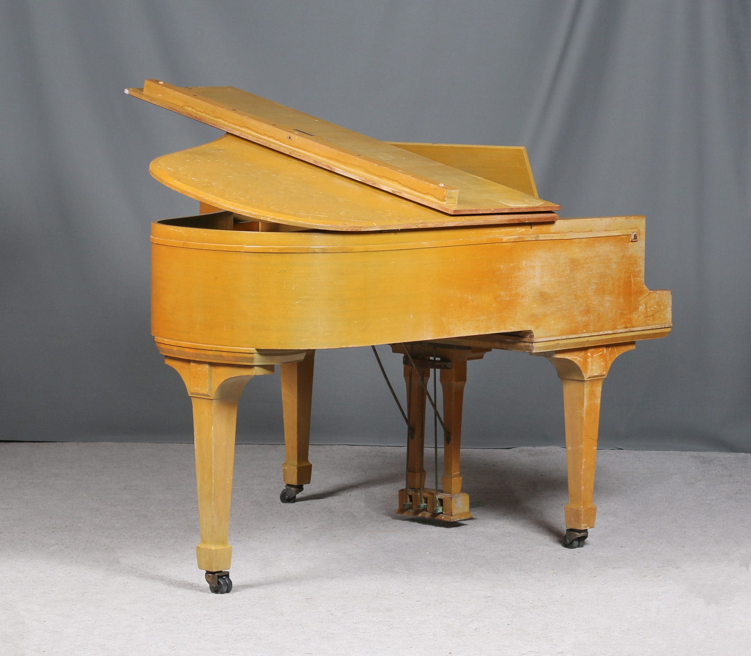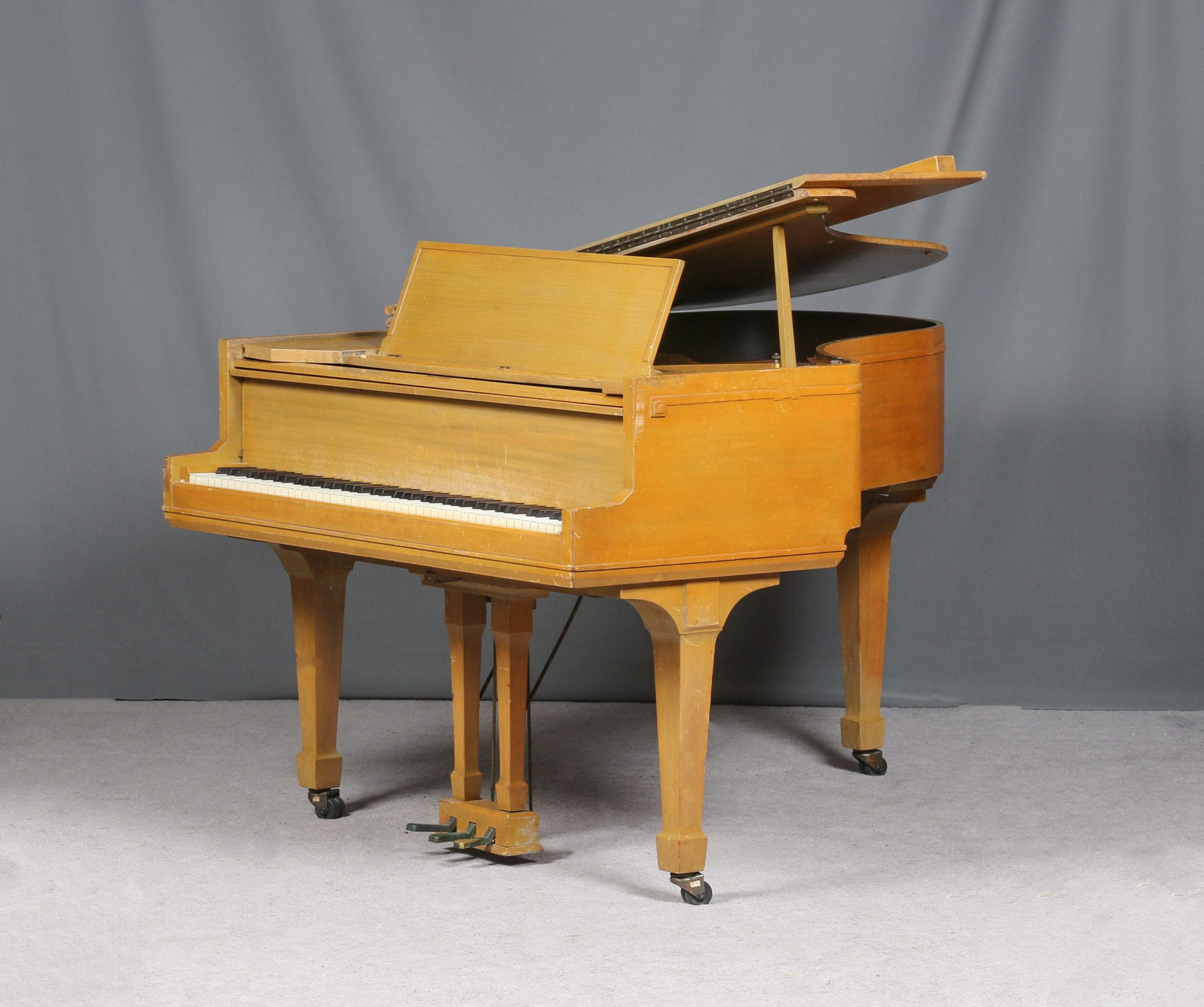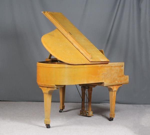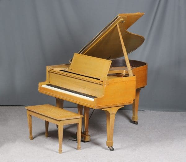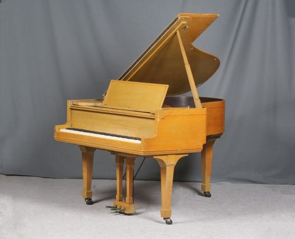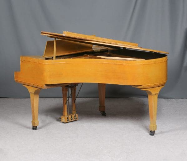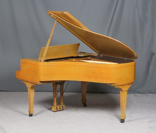 This beautiful Traditional Style Baby Grand Piano is known as the “Cupid” model by its manufacturer. The Sohmer Piano Company was one of the very last American piano manufacturers that hand-built their pianos and they are well known for their exceptional high quality and workmanship. This piano is made of unique blonde mahogany wood, giving it a uniquely beautiful appearance.