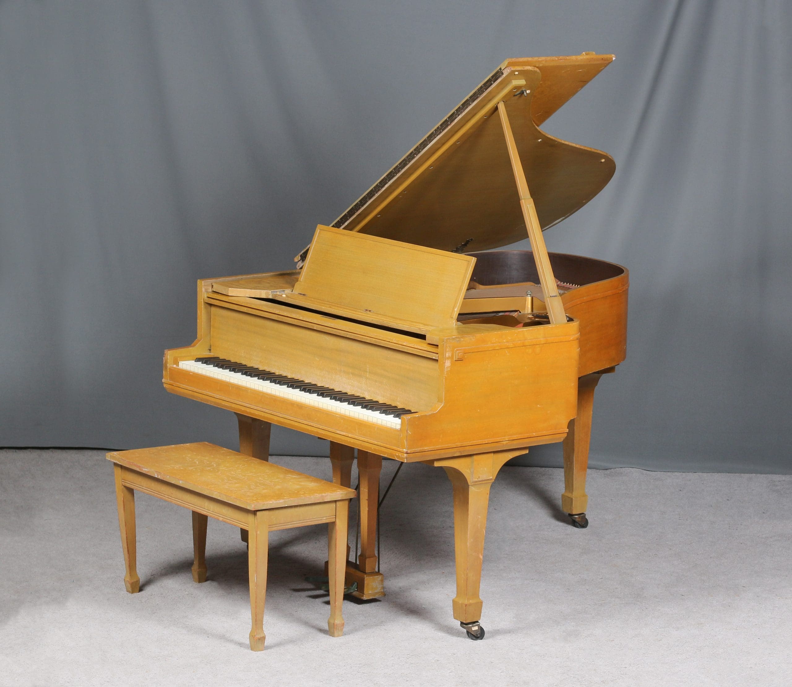 This piano is being restored to like new condition, inside and out, and will rival the tone and touch of any higher quality grand piano produced today. The instrument can be equipped with computerized player mechanisms if desired. The original matching piano bench is included.