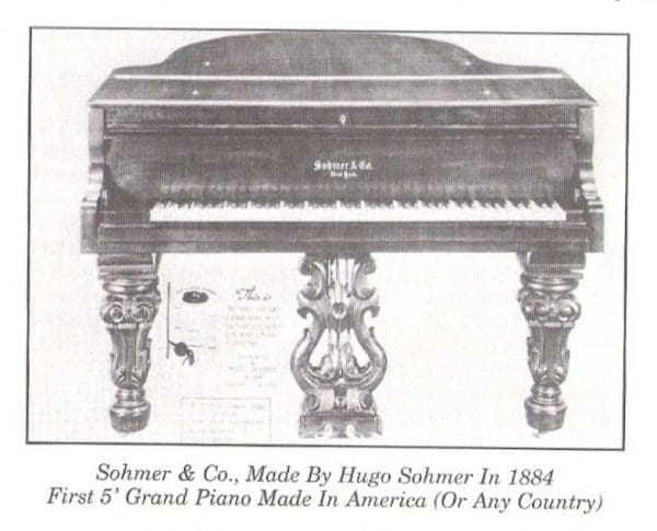 Pictured on page 320 of the Pierce Piano Atlas, this piano was one of those very first baby grand pianos ever made, making it historically significant in American piano history. Hugo Sohmer built some of the finest pianos in America. Established in 1872, the Sohmer name was built until 1988, making it one of the few prominent American piano manufacturers to survive well over a century.