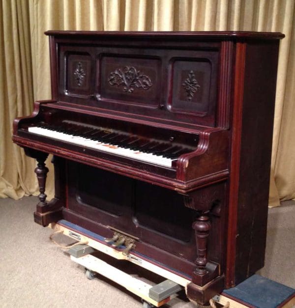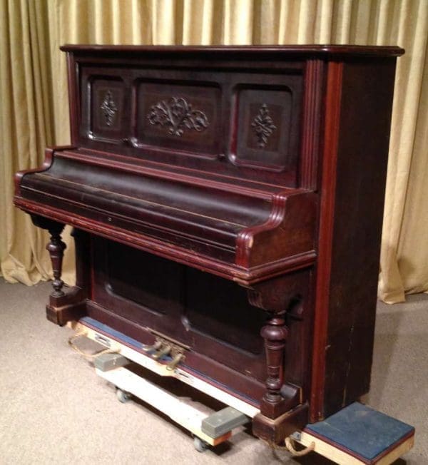 DEPOSITS: The restoration of this instrument has not been completed. A 30% deposit is required on instruments pending restoration. This deposit holds the instrument and keeps it from being offered to other clients, and it also makes that piano’s restoration a priority. Once we complete the restoration, we invite the client to visit our shop to see and hear the piano. If the client is unable to visit our shop, we will send professional photos and videos of the piano for review. The client then has the option of paying the balance and purchasing the piano, transferring their balance to another piano in our shop, or getting a full refund for their deposit. The client is never at risk.