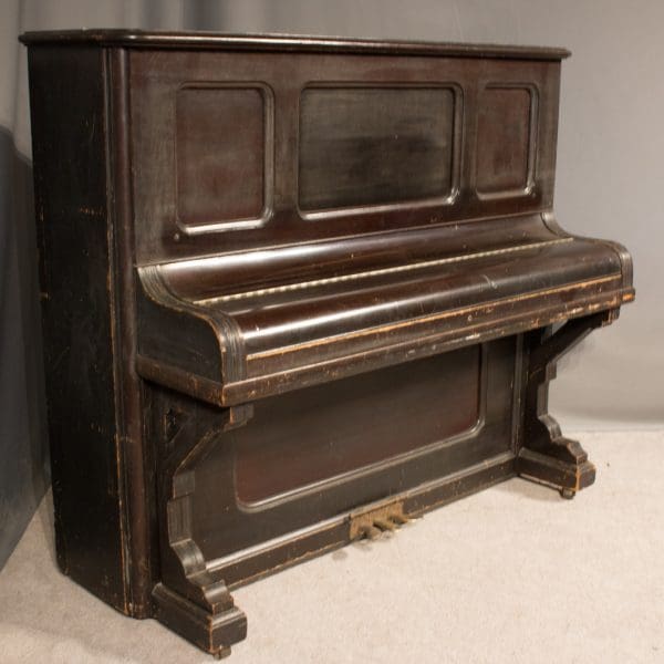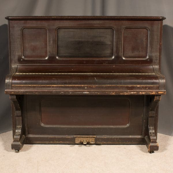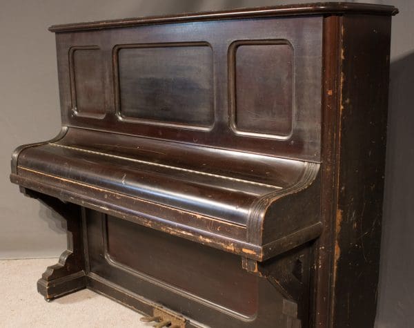 This piano is made of beautiful Honduran mahogany wood and is of the Eastlake Victorian style. While the instrument is truly Victorian, its Eastlake influence gives it a clean, simple and elegant appearance overall. This level of old-world craftsmanship is rarely encountered in instruments built today. This piano will be completely restored with historical accuracy. The instrument is a full-size “upright grand” which offers a tremendous tone quality.