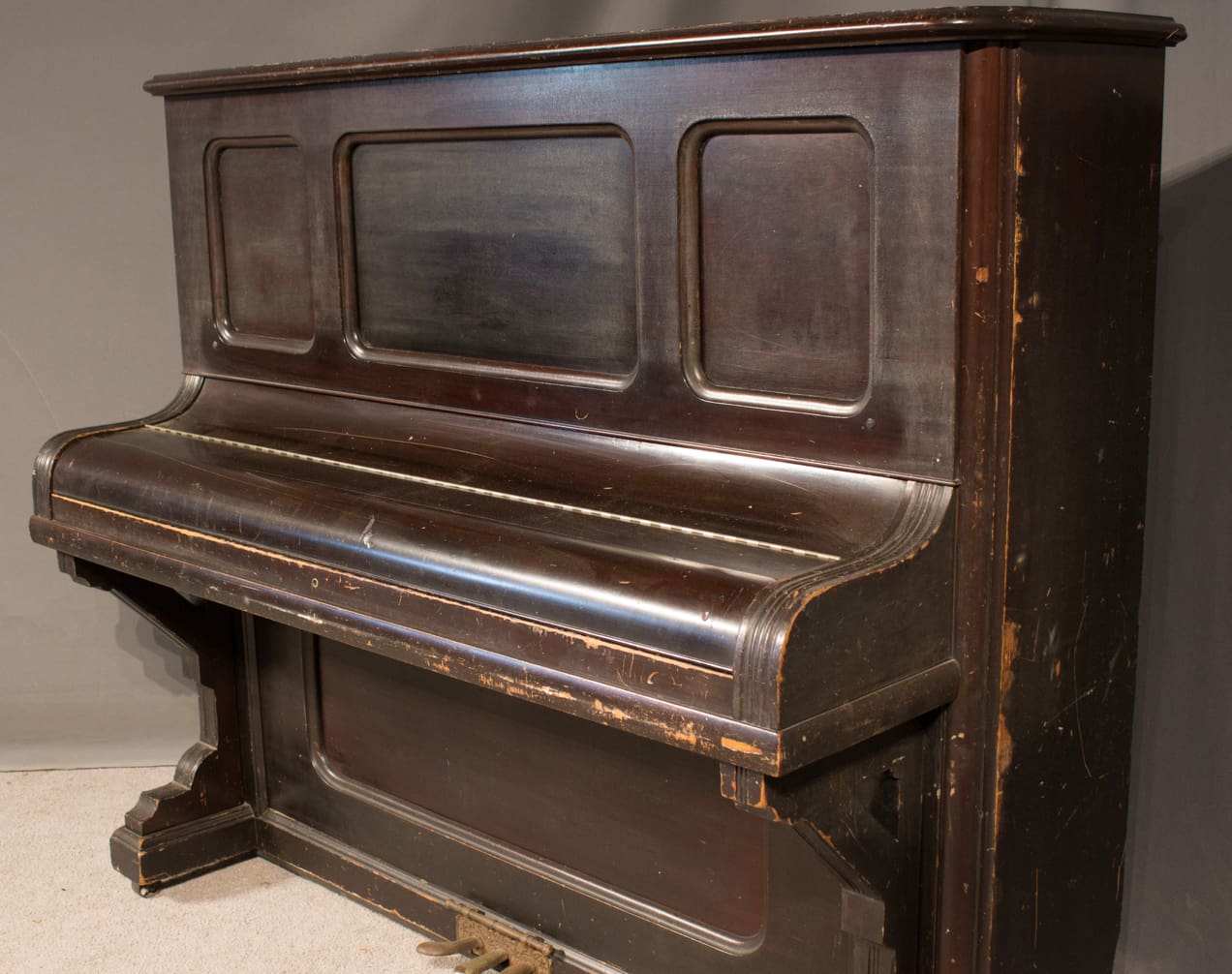 DEPOSITS: The restoration of this instrument has not been completed. A 30% deposit is required on instruments pending restoration. This deposit holds the instrument and keeps it from being offered to other clients, and it also makes that piano’s restoration a priority. Once we complete the restoration, we invite the client to visit our shop to see and hear the piano. If the client is unable to visit our shop, we will send professional photos and videos of the piano for review. The client then has the option of paying the balance and purchasing the piano, transferring their balance to another piano in our shop, or getting a full refund for their deposit. The client is never at risk.
