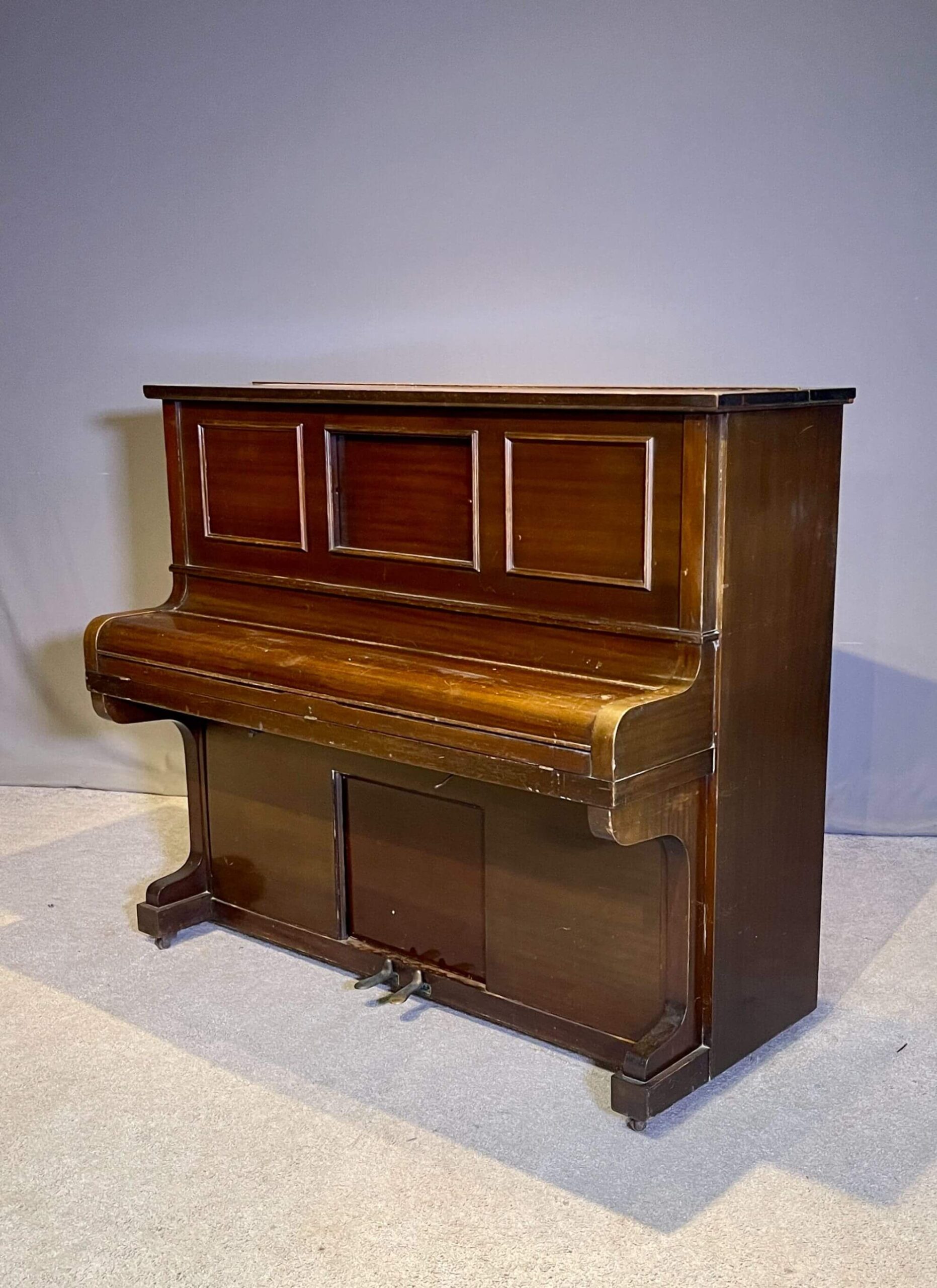 Crafted from fine mahogany, this piano can be custom-finished in any desired color or tone during restoration. It has been exceptionally well cared for over the decades and remains in impressive condition—even in its current unrestored state, the sound quality is rich and resonant for such a compact instrument.