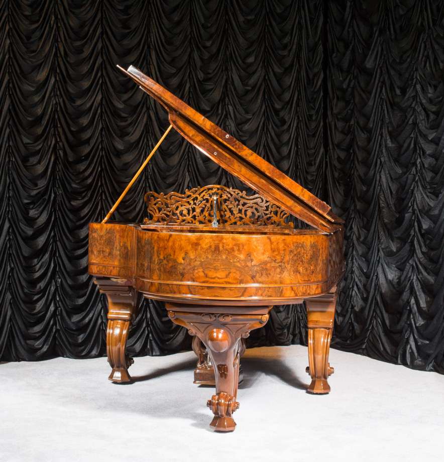 Exquisite Rococo Carved Steinway Model A Grand Piano In Exotic Burl Wood Finish