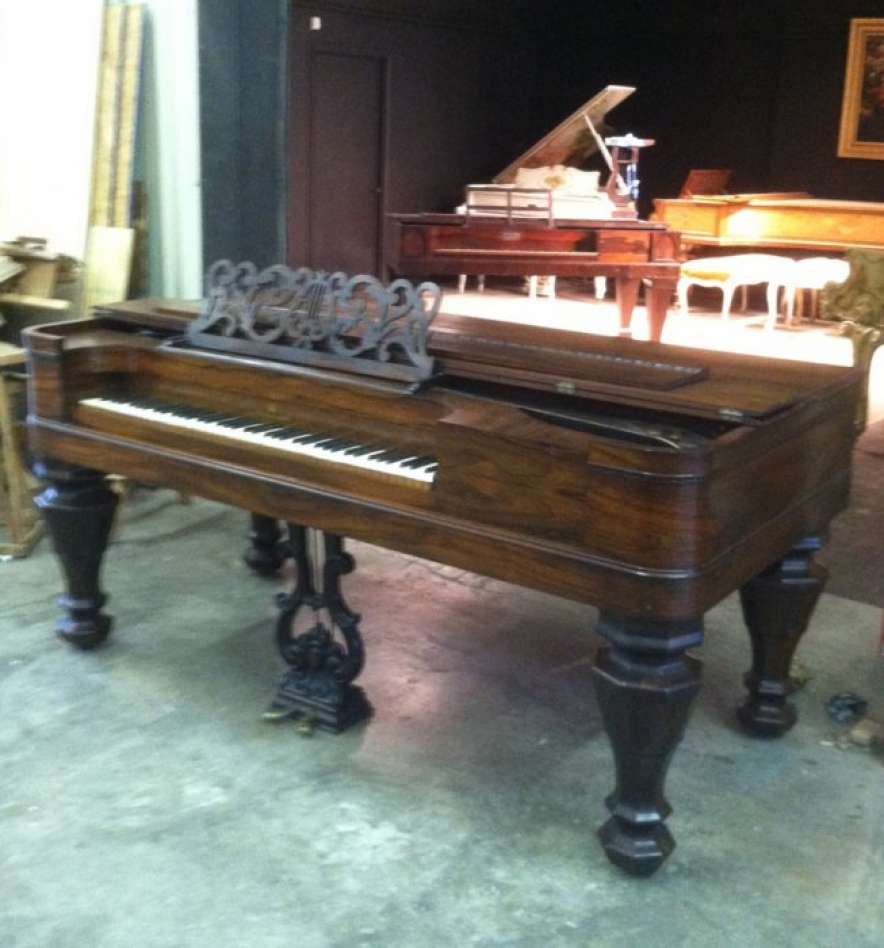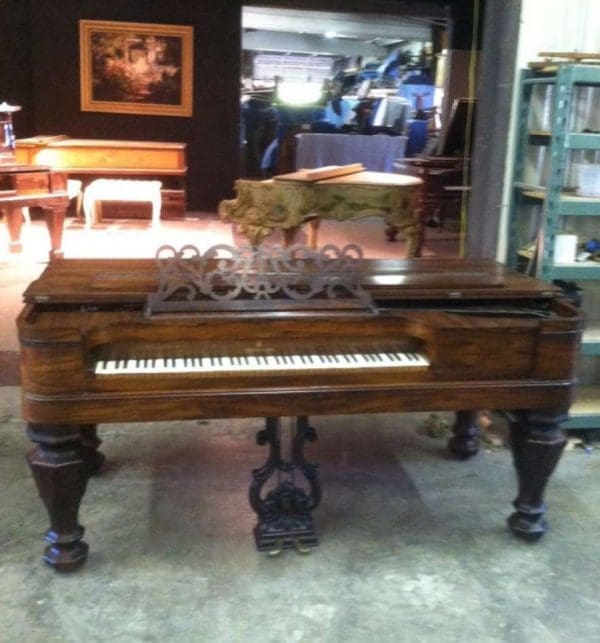 This piano was built by the famous Steinway & Sons Piano Company in 1857, making it a rare and early model by Steinway. The case is made of lovely Brazilian Rosewood, and is made in the Empire Revival Victorian style. The instrument is a bit smaller than some of Steinway’s later square pianos, making it ideal for someone with limited space. This piano is being restored to like new condition, inside and out, and can be equipped with computerized player mechanisms if desired.