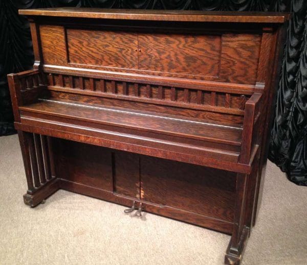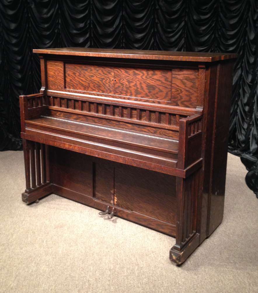 Very Rare Library Mission Style Player Piano In Straight Cut Grain Oak Wood