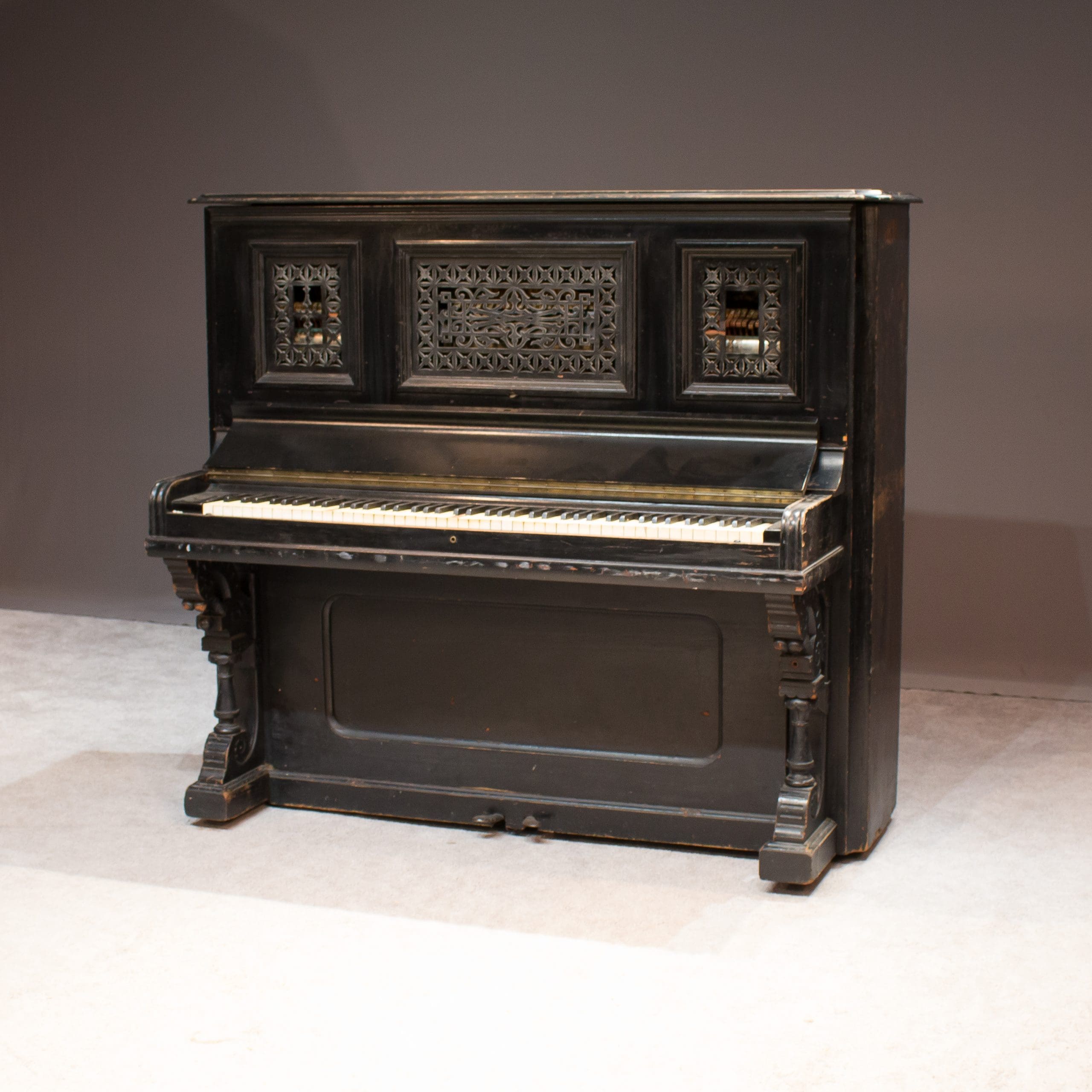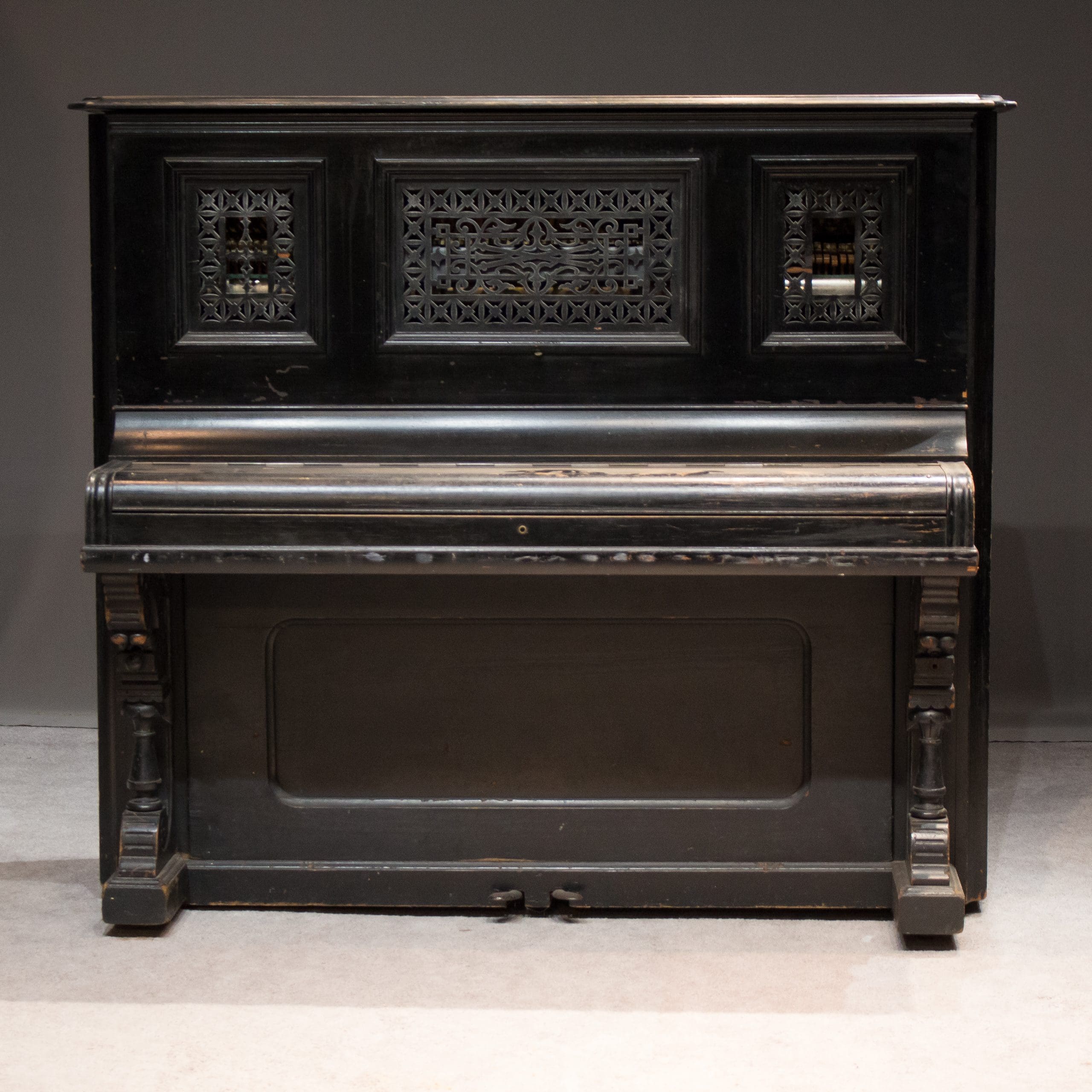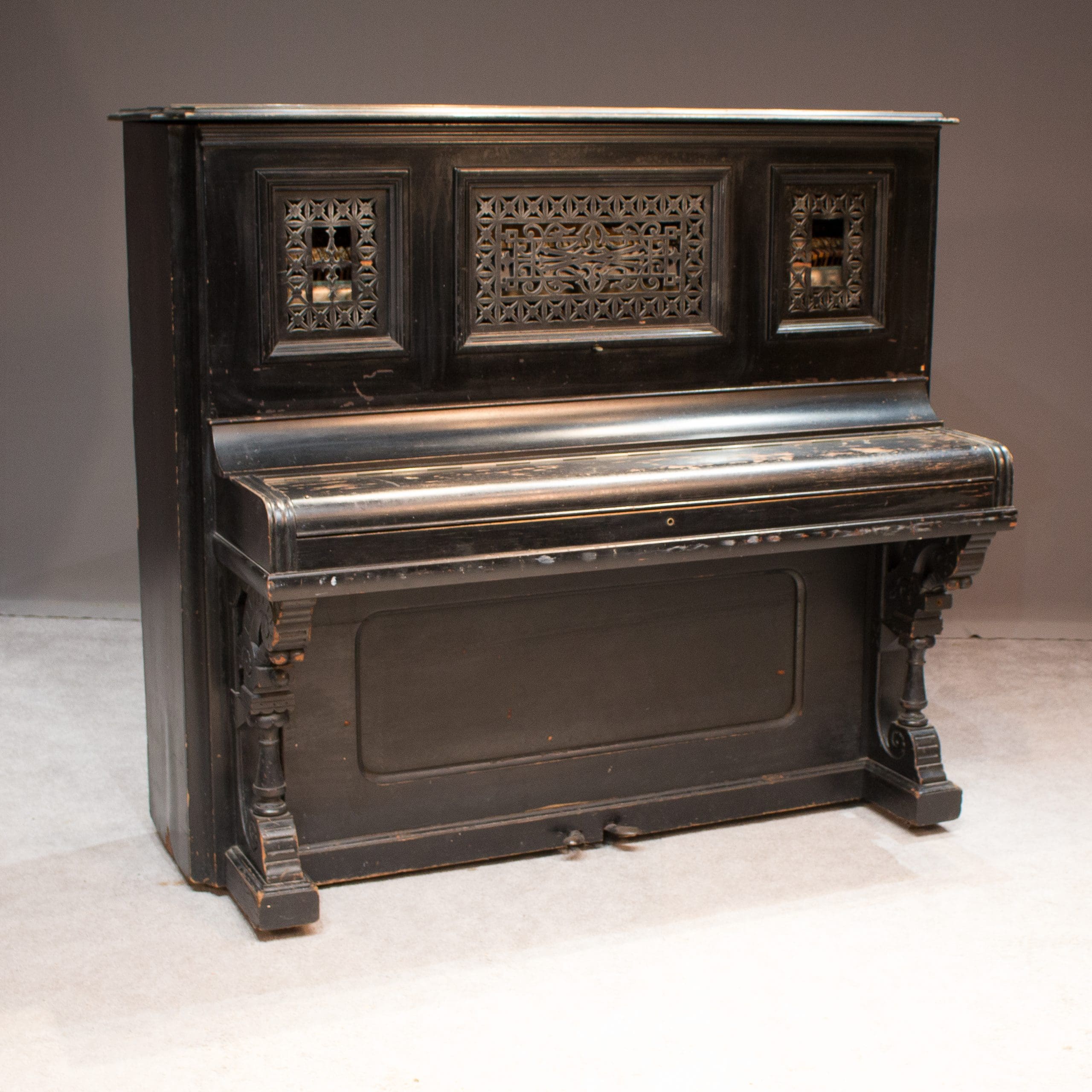 The Sterling Piano & Organ Company was known for building high quality, elaborate instruments during the turn-of-the-century era. This lovely piano is a prime example of the high Victorian style from the era.