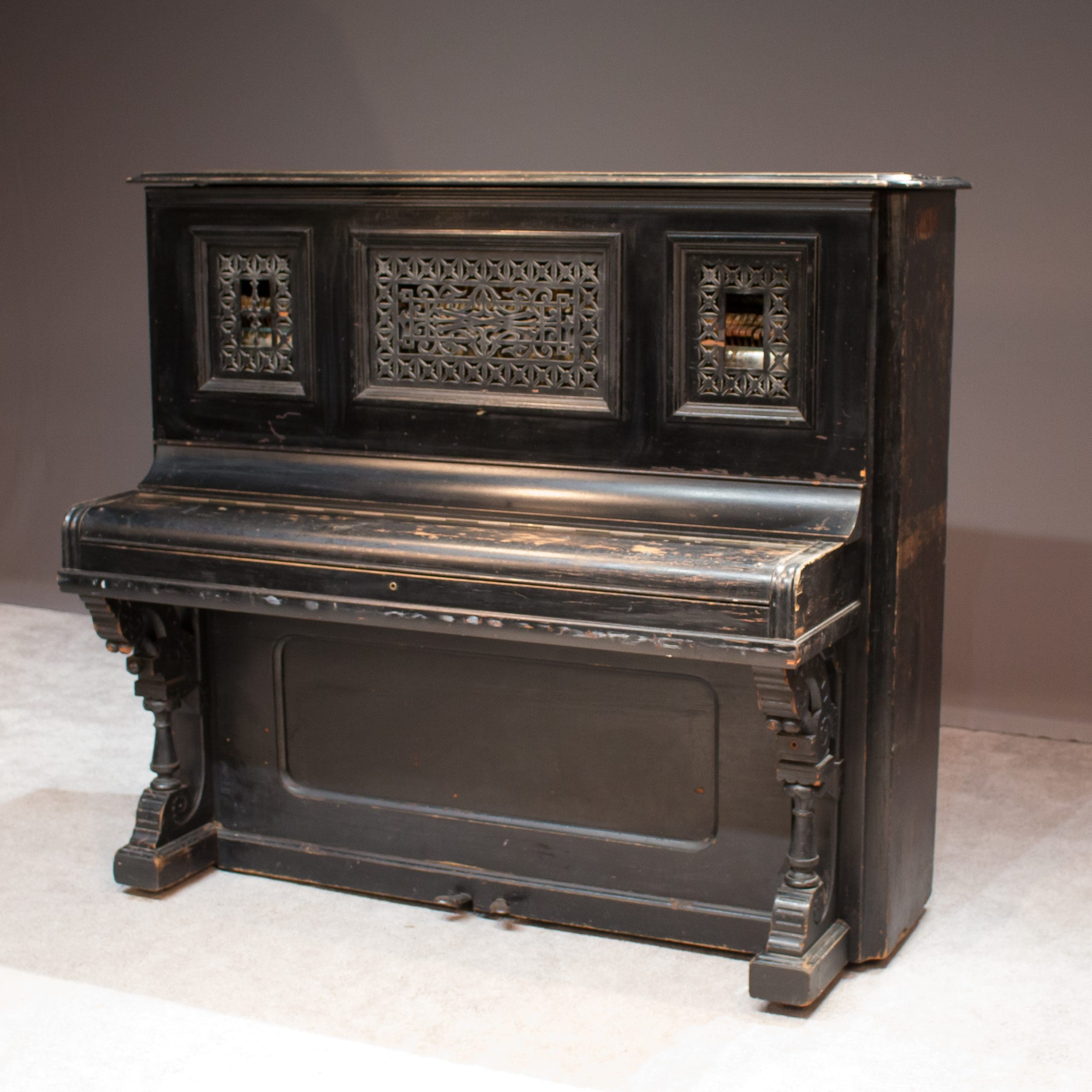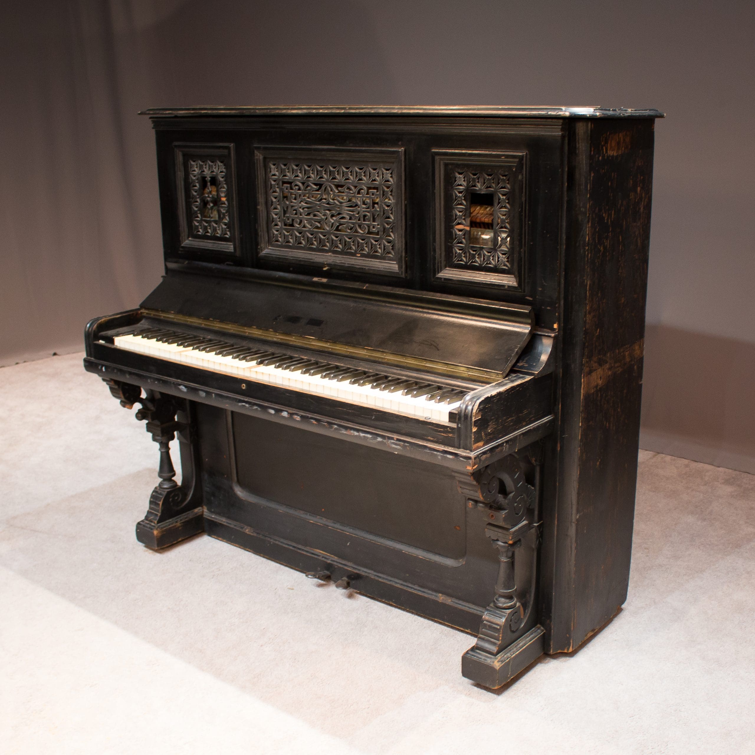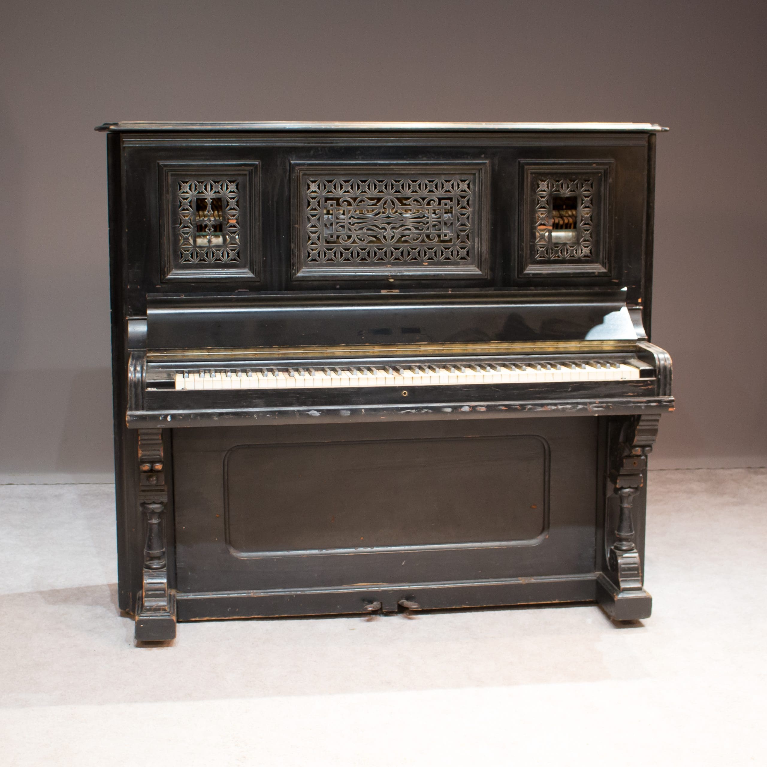The Sterling Piano & Organ Company was known for building high quality, elaborate instruments during the turn-of-the-century era. This lovely piano is a prime example of the high Victorian style from the era.