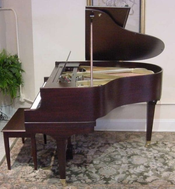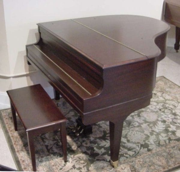 Stodart built high quality pianos from 1832-1931, one of the very few American Piano Companies to survive for an entire century. This baby grand piano is called an Apartment Grand, and it measures only 4 feet 9 inches long. It would be ideal for someone with limited space. This Stodart baby grand piano is made of traditional style mahogany wood, and has a warm tone and an even feel…not tinny sounding like most cheap new pianos. Note the amazing transformation by comparing the “before” and “after” photos! This piano comes with a matching mahogany bench. It can have the computerized player mechanisms added if desired.