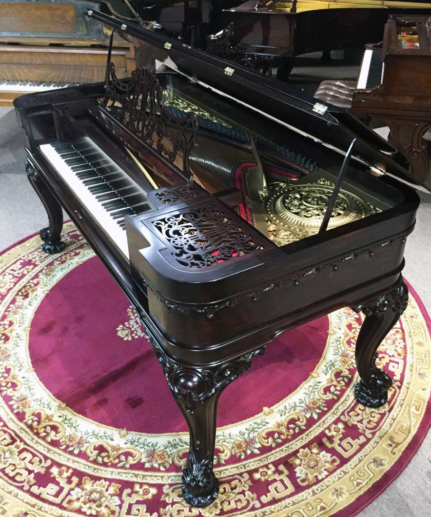 DEPOSITS: The restoration of this instrument has not been completed. A 30% deposit is required on instruments pending restoration. This deposit holds the instrument and keeps it from being offered to other clients, and it also makes that piano’s restoration a priority. Once we complete the restoration, we invite the client to visit our shop to see and hear the piano. If the client is unable to visit our shop, we will send professional photos and videos of the piano for review. The client then has the option of paying the balance and purchasing the piano, transferring their balance to another piano in our shop, or getting a full refund for their deposit. The client is never at risk.