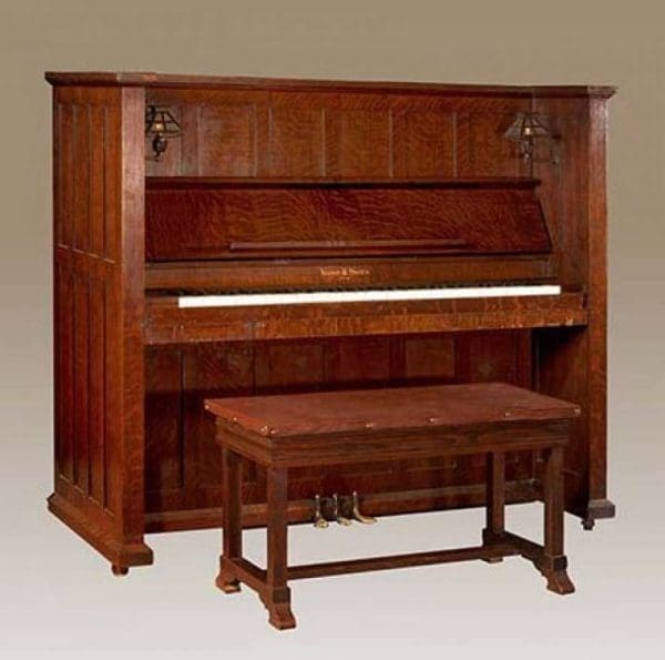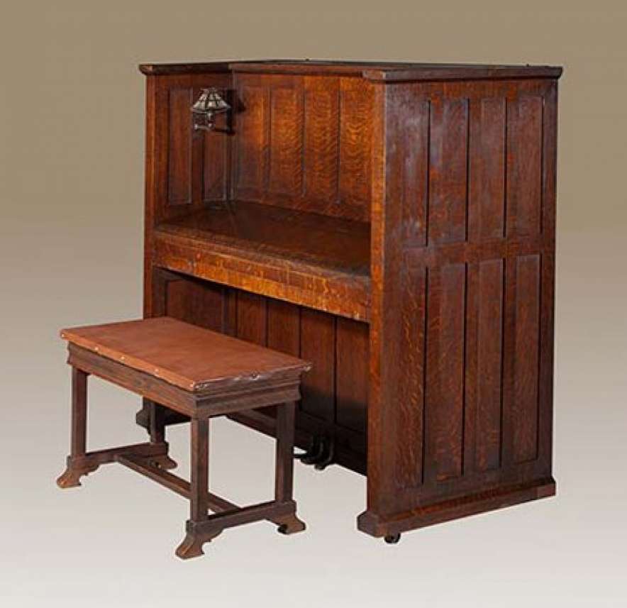 Note: As founder of The Antique Piano Shop, I have personally collected Mission / Arts & Crafts style pianos for over 25 years. I have a great passion for anything Mission / Arts & Crafts, including Craftsman homes, furniture, and accessories. If you are a true Arts & Crafts enthusiast, you will appreciate how impossible it is to find true Arts & Crafts / Mission style pianos in today’s market. Nearly three decades of collecting and preserving these “impossible to find” instruments has allowed me the opportunity to present the largest collection of true Mission / Arts & Crafts style instruments anywhere in the world.