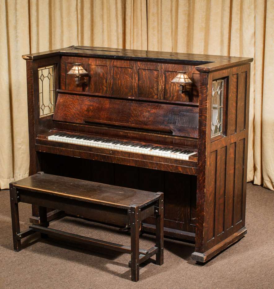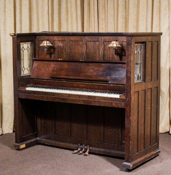 Note: As founder of The Antique Piano Shop, I have personally collected Mission / Arts & Crafts style pianos for over 25 years. I have a great passion for anything Mission / Arts & Crafts, including Craftsman homes, furniture, and accessories. If you are a true Arts & Crafts enthusiast, you will appreciate how impossible it is to find true Arts & Crafts / Mission style pianos in today’s market. Nearly three decades of collecting and preserving these “impossible to find” instruments has allowed me the opportunity to present the largest collection of true Mission / Arts & Crafts style instruments anywhere in the world.