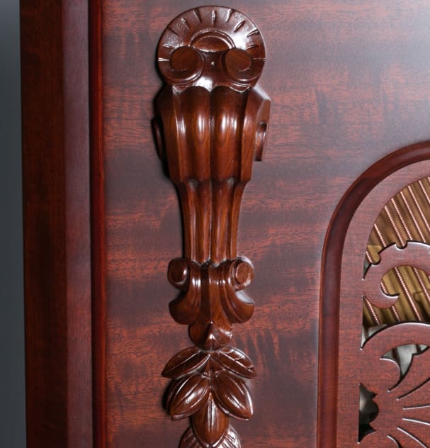 DEPOSITS: The restoration of this instrument has not been completed. A 30% deposit is required on instruments pending restoration. This deposit holds the instrument and keeps it from being offered to other clients, and it also makes that piano’s restoration a priority. Once we complete the restoration, we invite the client to visit our shop to see and hear the piano. If the client is unable to visit our shop, we will send professional photos and videos of the piano for review. The client then has the option of paying the balance and purchasing the piano, transferring their balance to another piano in our shop, or getting a full refund for their deposit. The client is never at risk.