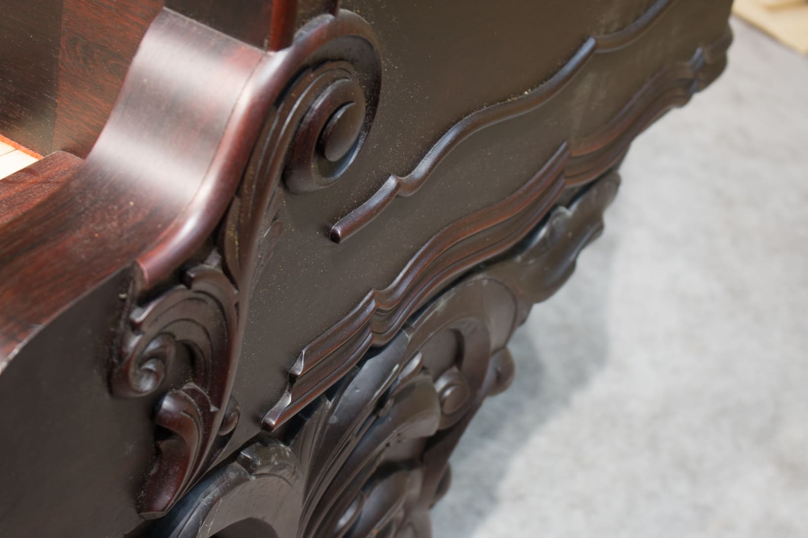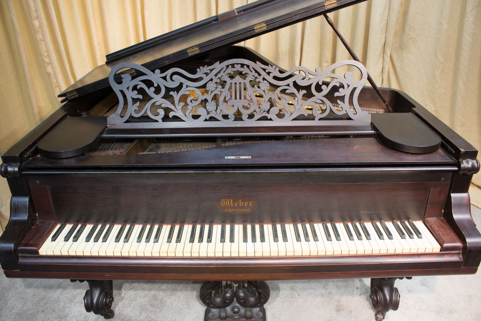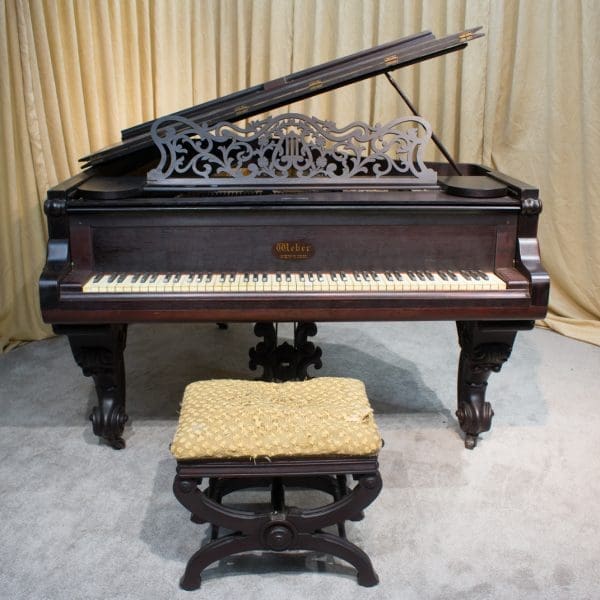 The Weber Piano Company was one of the leading American piano companies of the 19th and 20th Centuries, and is noted for their high quality, expensive pianos. We have had a handful of these wonderful Weber Rococo Victorian grand pianos, and they are consistently some of the finest pianos we see come through our shop. These pianos are known as “Elephant Leg” pianos due to the heavily carved cabriole legs they have…they resemble highly decorated circus elephants when you look at them sideways.