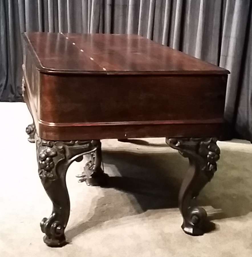 This is a lovely example of the dark Brazilian Rosewood square pianos built by the famous Weber Piano Company of New York. This Rococo Victorian style grand piano features beautifully carved legs, music rack and pedal lyre. One of Weber’s later models, this piano appears to be exceptionally well preserved. These large, full size Weber square grand pianos make magnificent instruments.