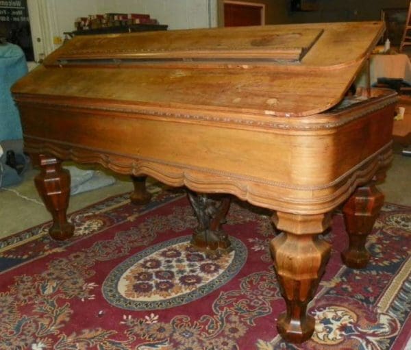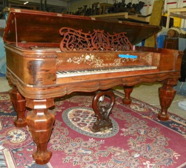 DEPOSITS: The restoration of this instrument has not been completed. A 30% deposit is required on instruments pending restoration. This deposit holds the instrument and keeps it from being offered to other clients, and it also makes that piano’s restoration a priority. Once we complete the restoration, we invite the client to visit our shop to see and hear the piano. If the client is unable to visit our shop, we will send professional photos and videos of the piano for review. The client then has the option of paying the balance and purchasing the piano, transferring their balance to another piano in our shop, or getting a full refund for their deposit. The client is never at risk.