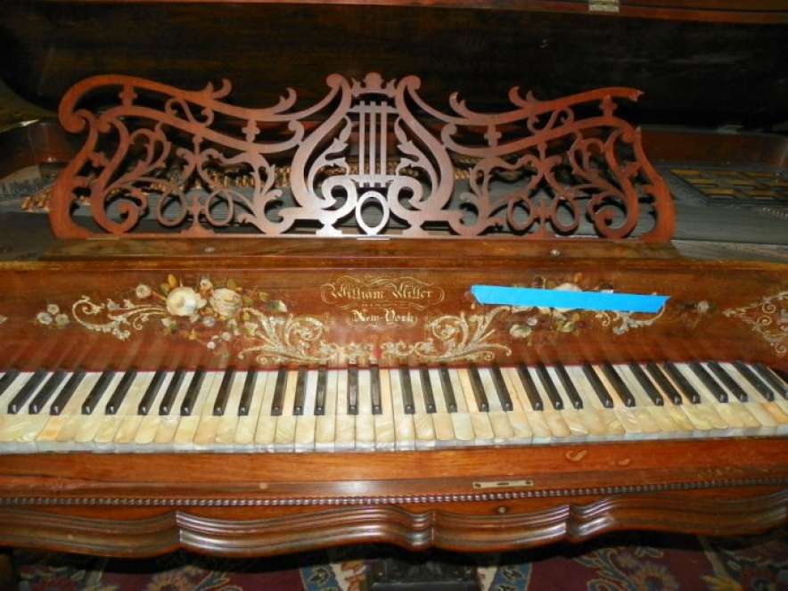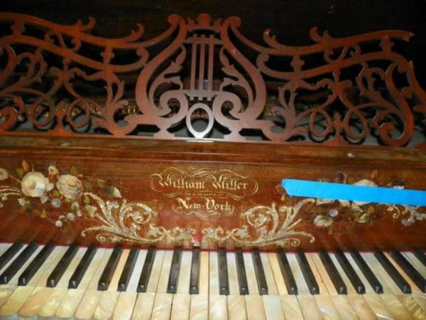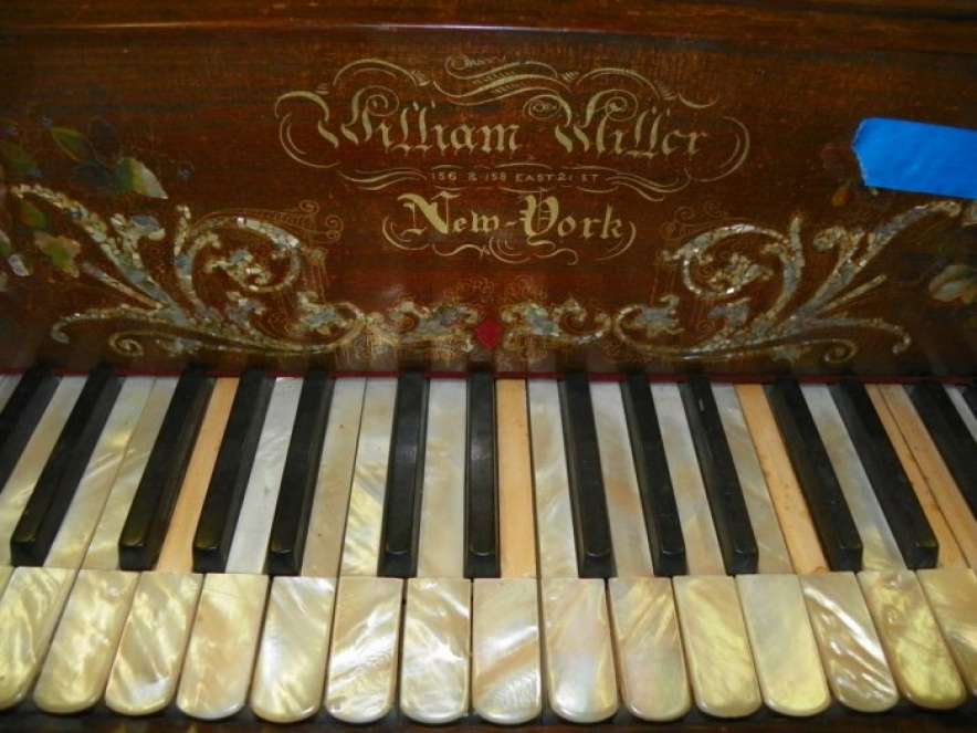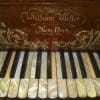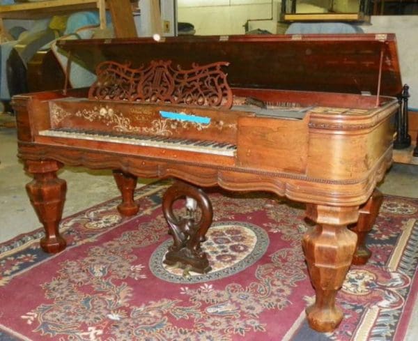 This beautiful square grand was built by the firm of William Miller in New York City about 1855. William Miller built very well made pianos, and specialized in customized carved piano cases for other manufacturers. This piano is made of stunning Brazilian Rosewood and is adorned with beautiful Mother Of Pearl inlay and pure Abalone keys! This piano was built to be placed in the center of a room because all four sides are finished and carved. Note the lovely scalloped case and ornate moldings. This piano is being completely restored to like new condition, inside and out. Computerized player mechanisms can be installed if desired.