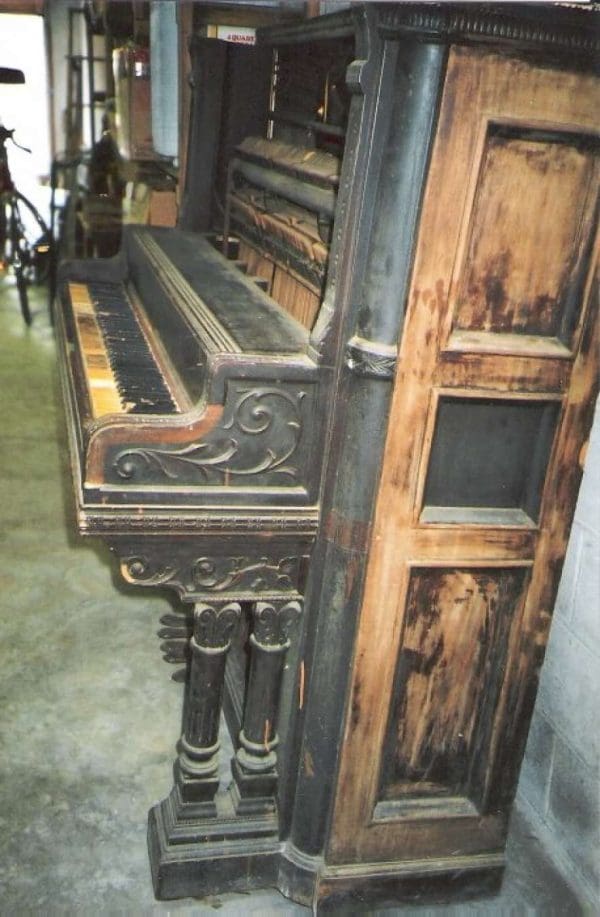 DEPOSITS: The restoration of this instrument has not been completed. A 30% deposit is required on instruments pending restoration. This deposit holds the instrument and keeps it from being offered to other clients, and it also makes that piano’s restoration a priority. Once we complete the restoration, we invite the client to visit our shop to see and hear the piano. If the client is unable to visit our shop, we will send professional photos and videos of the piano for review. The client then has the option of paying the balance and purchasing the piano, transferring their balance to another piano in our shop, or getting a full refund for their deposit. The client is never at risk.